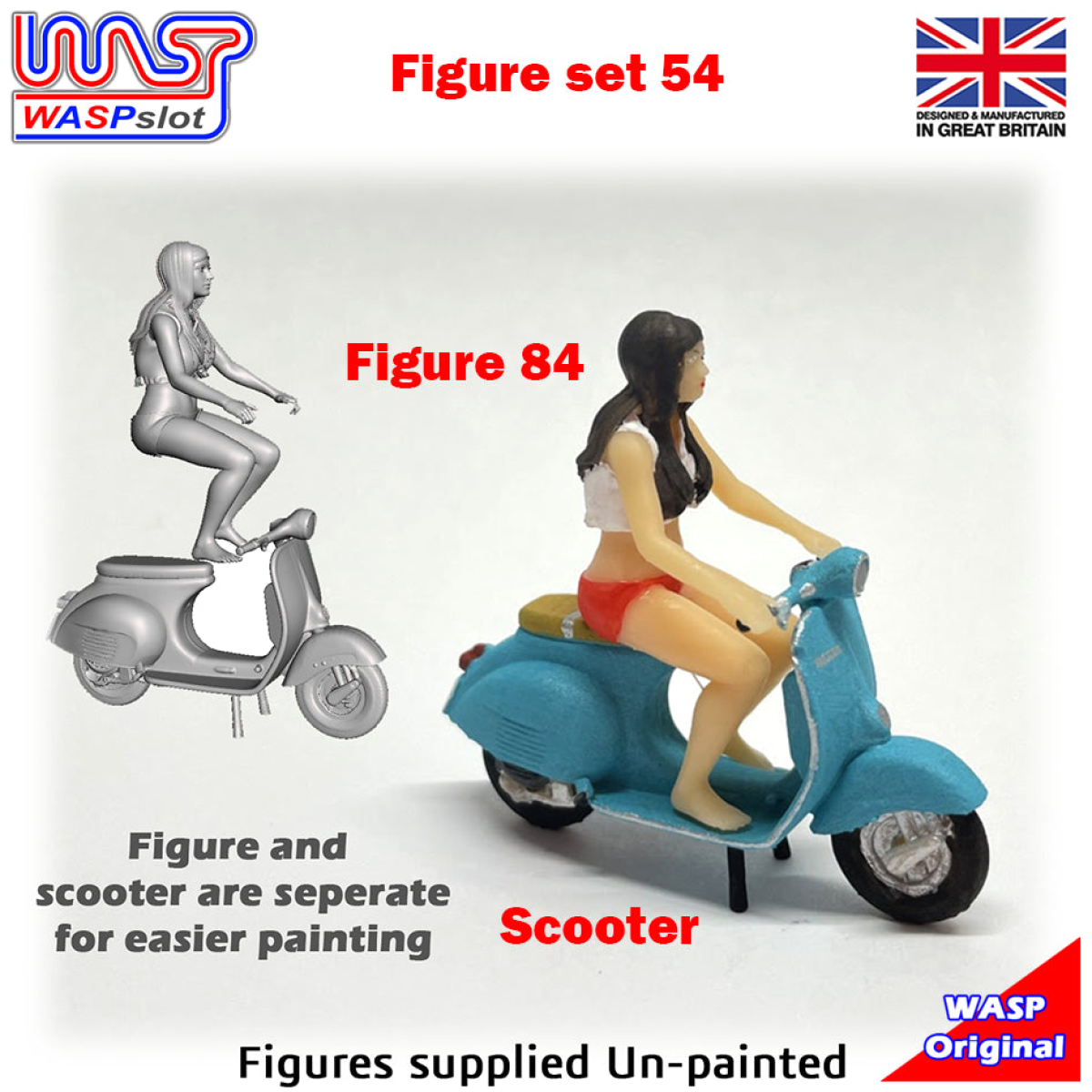 Trackside Unpainted Figure Scenery Display Scooter and Rider Set 54 New 1:32 Scale WASP