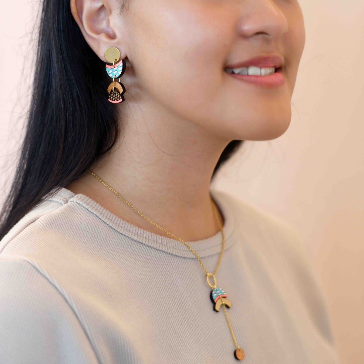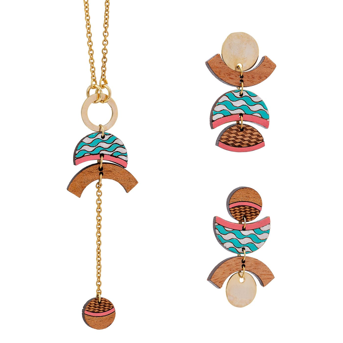 Our Thallaso Recycled Wood Gold Earrings are handmade using offcuts of mahogany that are salvaged from furniture factories. This upcycled necklace is elegant, simple and lightweight. Each piece is unique and no two necklaces will ever be quite the same.