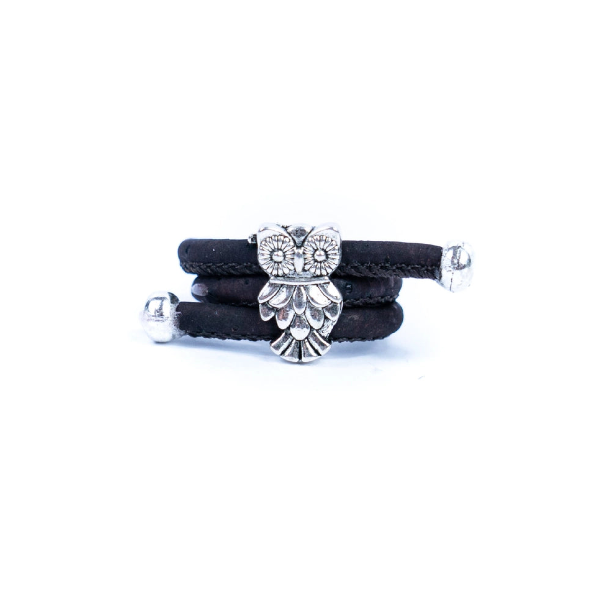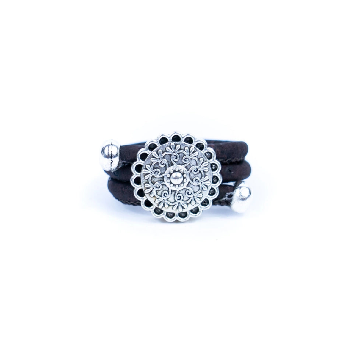 Dark Brown Cork Cord and Alloy Accessories Handmade Ladies Rings