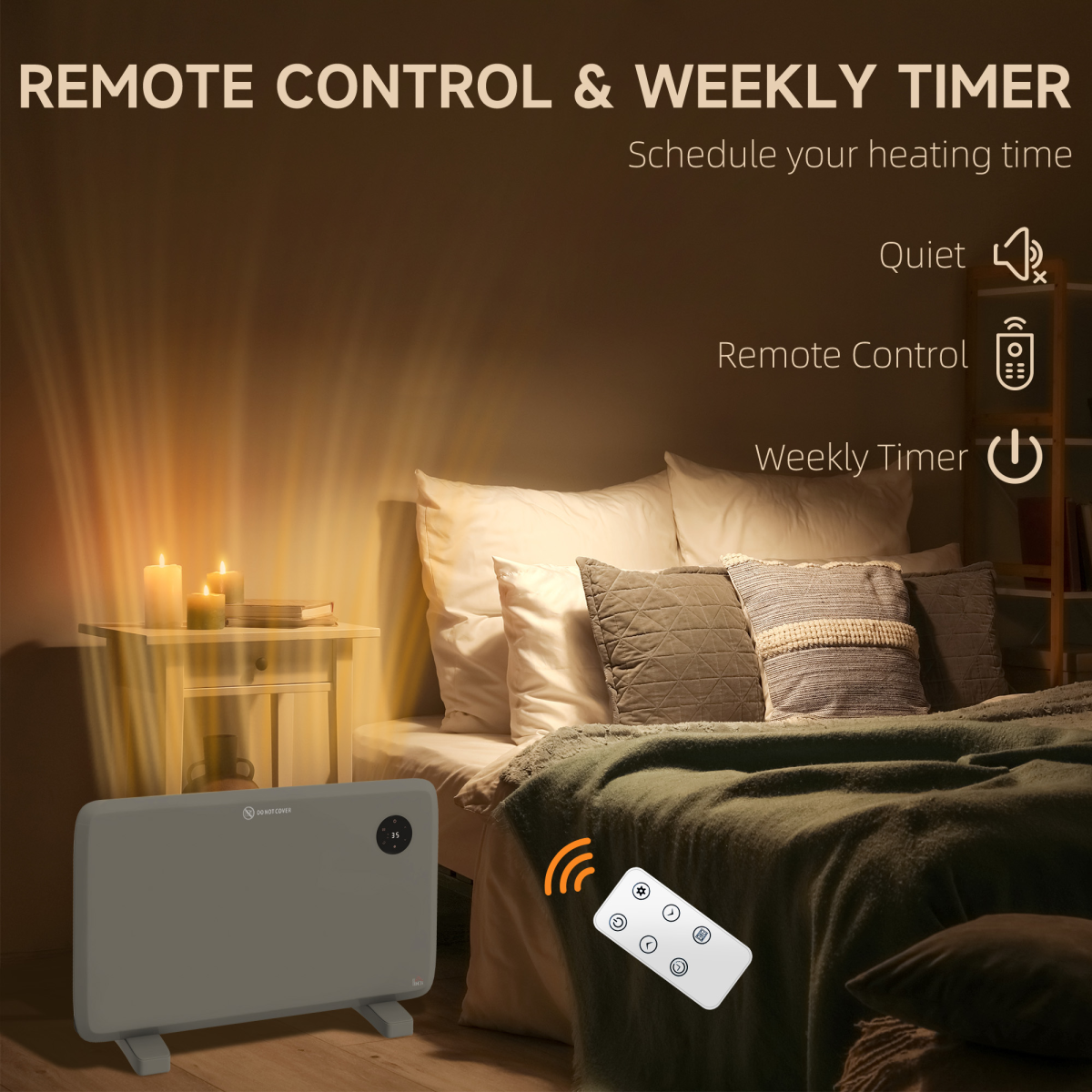 1200W Electric Convector Heater, Quiet Space Heater with LED Display, Grey