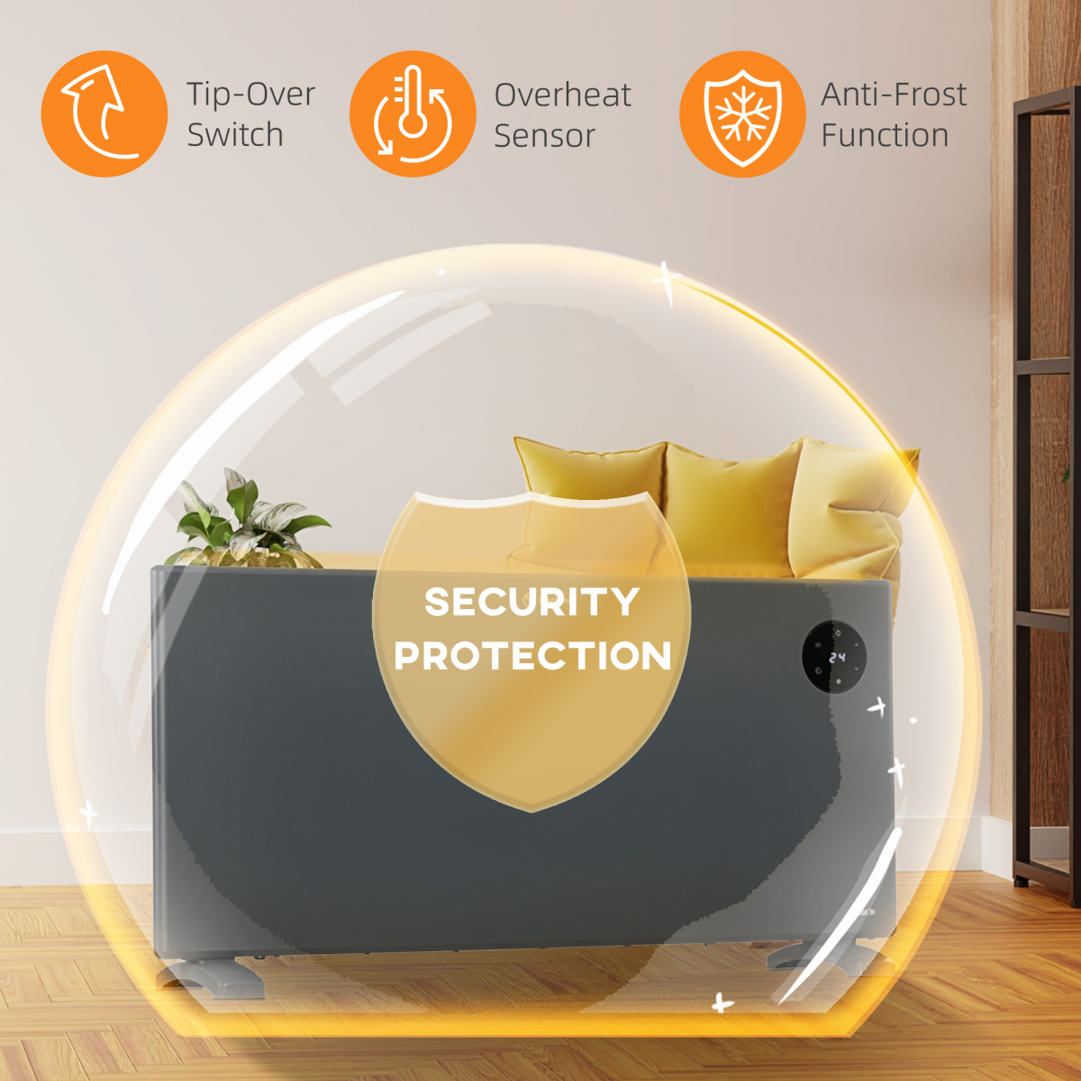 2000W Electric Convector Heater, Quiet Space Heater with LED Display, Grey