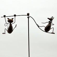 50" CAT AND MOUSE GARDEN SPINNER These garden weathervanes are suitable for garden, potted plants, flower beds, lawn, home decoration, party gift supply, shopping mall decoration, large park exhibition, decorative props Spike for inserting into ground Animal themed