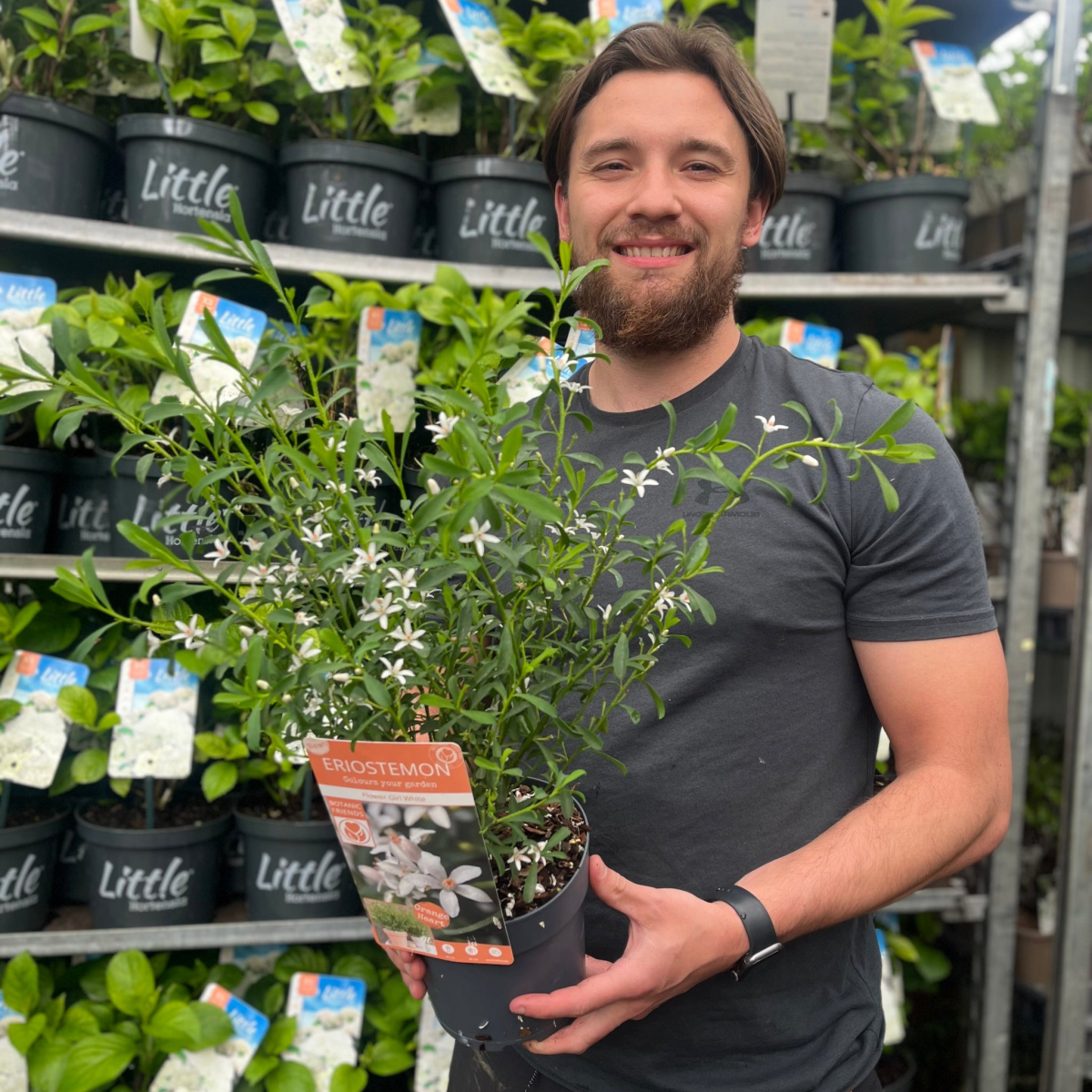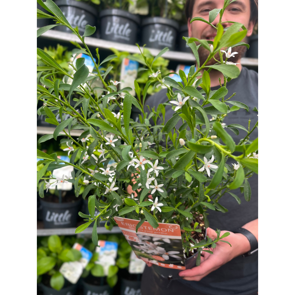 Eriostemon 'Flower Girl White' is a graceful, evergreen shrub that delights with a profusion of delicate white blooms throughout the cooler months. Elegant and lightly scented, its fine foliage and airy flowers bring a soft, romantic touch to garden spaces, making it a standout choice for borders, containers, or feature planting.