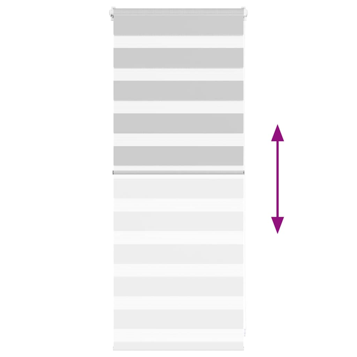 Elevate your room's style and functionality with this zebra blind, offering privacy and elegance. Durable and low maintenance: Made from 100% polyester, the zebra blind is built to last and resist wear and tear. They are also easy to clean, typically requiring light dusting or wiping with a damp cloth.Privacy and sun protection: The two-layer design features alternating transparent and opaque fabric panels. The light can be easily controlled using the chain hoist, allowing for seamless adjustment of the room's lighting from translucent to fully darkened.Two assembly ways: You can attach the zebra roller blind to the wall or window with screws or without drilling using clamping brackets, depending on your needs.Elegant design: Thanks to its sleek and modern pattern design, this zebra roller blind effortlessly complements a variety of room decor. You can use it in the living room, bedroom, office, and so on.Child safety and adjustability: The roller blind includes a chain connector that makes it easy to adjust the height according to your needs, and it also has a cord clip to add child safety. Warning:Keep cords out of the reach of young children. Cords may become wrapped around a child’s neck. Good to know:Before buying blinds, start by measuring your window glass. Just a friendly tip: the fabric is a bit narrower than the total width, including the brackets.To make sure your new blinds provide complete coverage, just add 4,1 cm to the width of the window glass when calculating what to order.