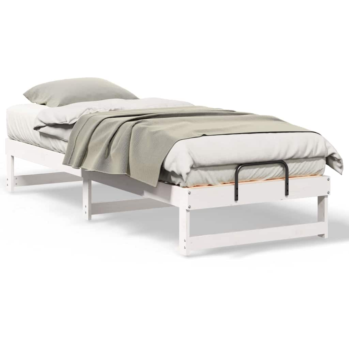 vidaXL Bed Frame with Carry Handles White Solid pine wood