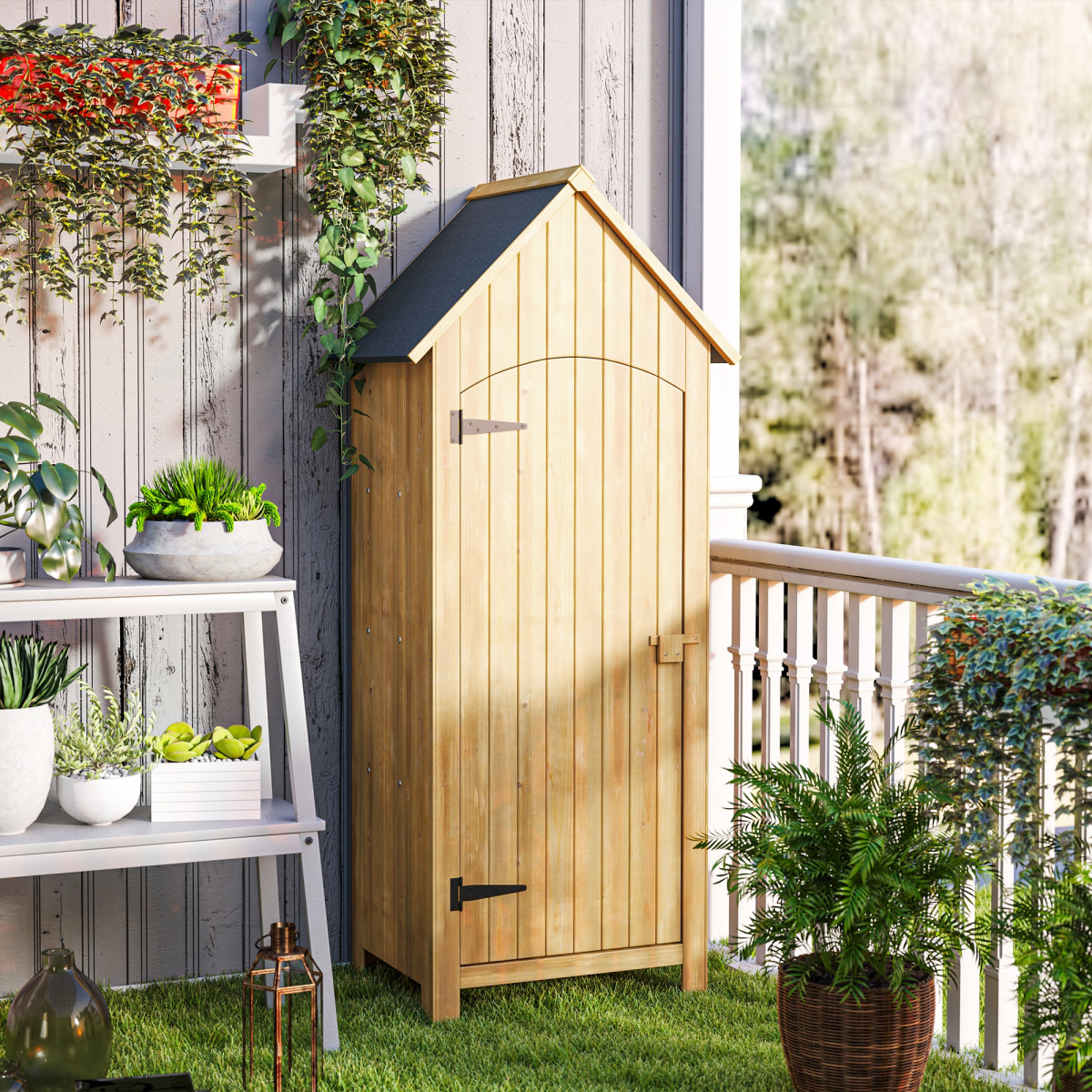 Outsunny Wooden Small Garden Shed with 3 Shelves and Tilt Roof