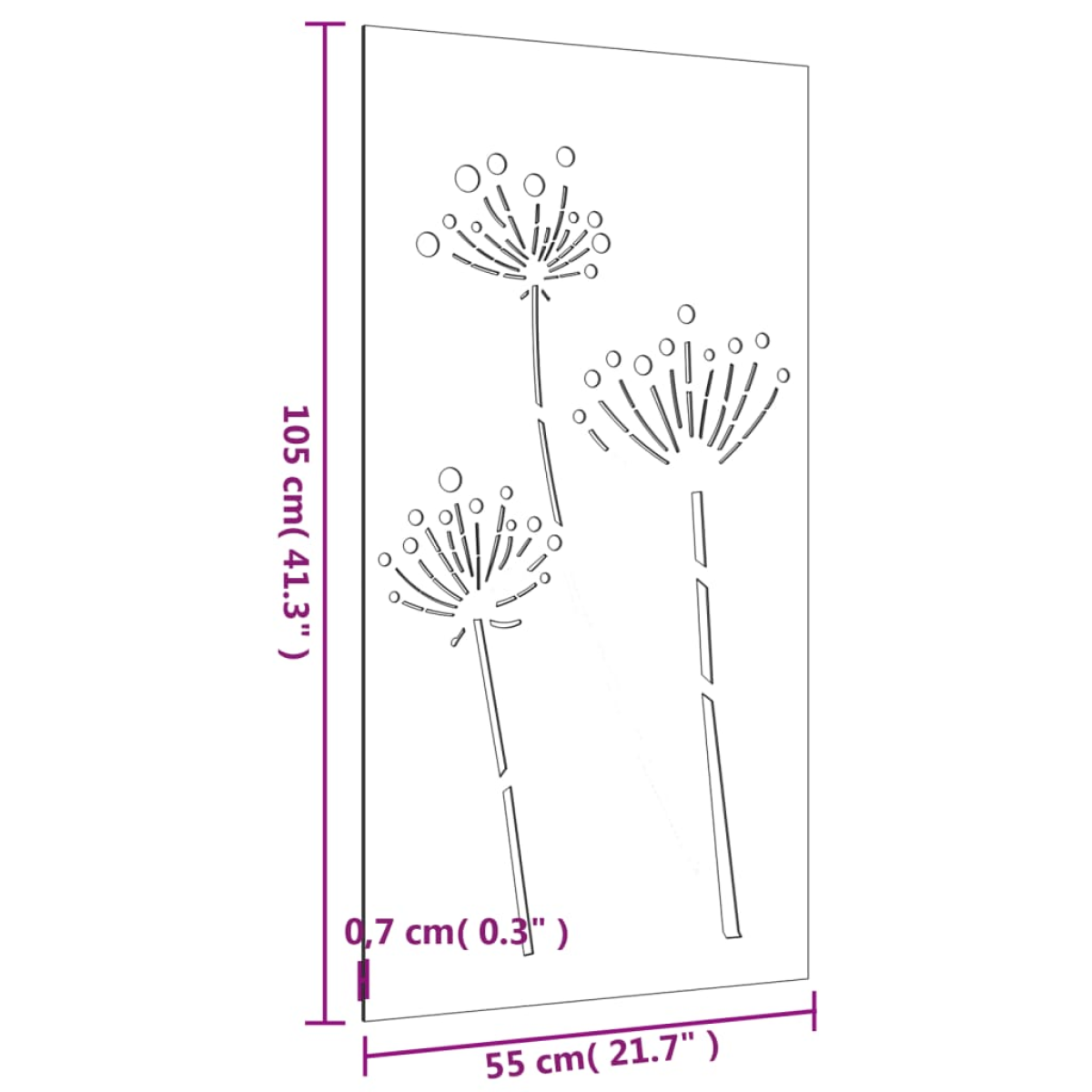 Turn a blank wall or fence into a masterpiece with this garden wall decoration. Durable material: Corten steel, also known as weathering steel. This is anti-corrosive by its very nature. It develops a rusty protective layer against corrosion when first exposed to atmospheric conditions. Thus, you don't need to paint it. This can help you save on maintenance and repair costs. The distinctive brown colour on the corten steel will surely be an eye-catcher. Finally, weathering steel is exceptionally durable and will stand up to the test of time.Exquisite design: The metal wall decoration adopts a hollow design of flowers pattern, creating a natural atmosphere in your garden.Easy installation: The outdoor wall decoration is easy to install with the mounting holes on the back. Good to know:This product is not rusted yet and has a normal metal colour when you receive it, but rust will develop over time. You could speed up the rusting process by spraying it with soap water and salt water. To keep your clothes stain-free, avoid contact with the developing rust layer.
