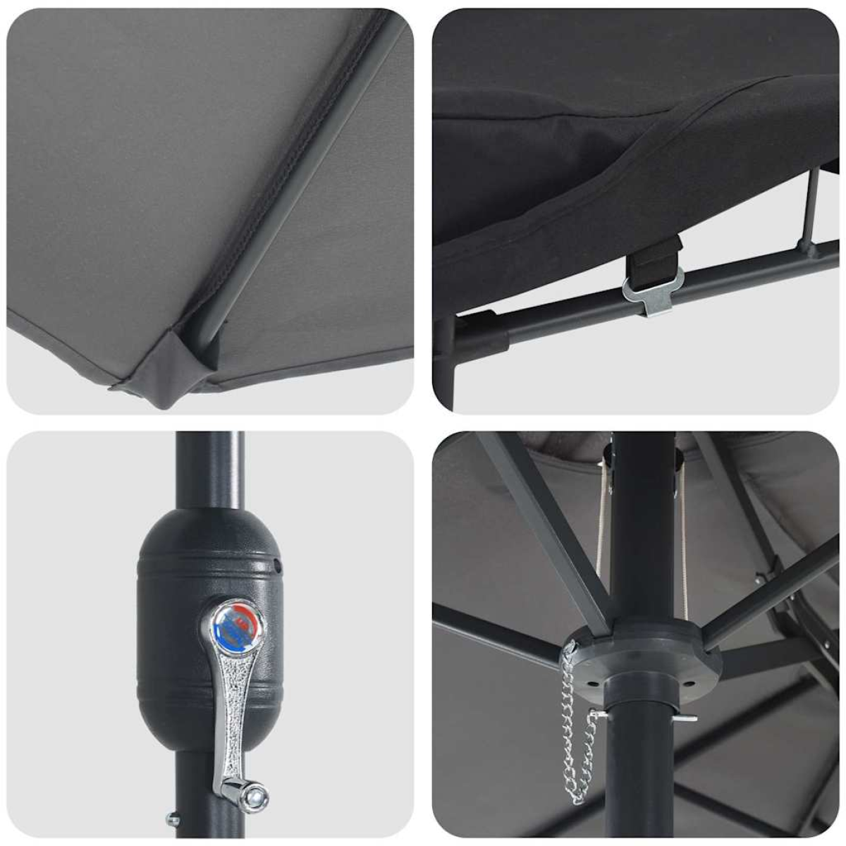 This cool sun shade umbrella is a stylish touch for any outdoor area, giving you both flair and use. Built to brave the summer heat, it jazzes up places like balconies, gardens, and patios with its sleek look. It's a practical shade solution, creating a comfy space for family gatherings or intimate al fresco meals. The smooth feel and adjustable features make it flexible for all sorts of outdoor spots while fitting right in with modern design trends. Materials: Made from polyester fabric, this umbrella is all about style and durability. It's water-resistant, so it handles a bit of rain easily, making upkeep a breeze. With a sturdy powder-coated steel frame, every bit is chosen for strength and stability, promising it’ll last the whole season. Included Components: The umbrella has built-in LED lights for creating a welcoming atmosphere during evening get-togethers. The hand crank makes opening and closing it easy, and when it's not in use, you can fold it away hassle-free, keeping your outdoor area tidy and saving space. Features / Function / Design: This patio umbrella comes with a handle for quick adjustments, keeping things comfy. Its collapsible design means it’s compact for storage. The mix of flexibility and a hand-crank system means you can switch from shady lounging to sunny chats without a hitch. Recommended Uses: Perfect for summer shindigs, this umbrella brightens up spaces like gardens, patios, and balconies. It’s essential for all sorts of occasions, from lazy picnics to romantic meals outside, providing a cool escape from the blazing sun. Care & Maintenance: Keep it lasting longer with simple care tips; use a waterproof spray to boost its water resistance and steer clear of harsh cleaners. Cover the umbrella when you’re not using it to protect it from the elements, preserving its look and life.