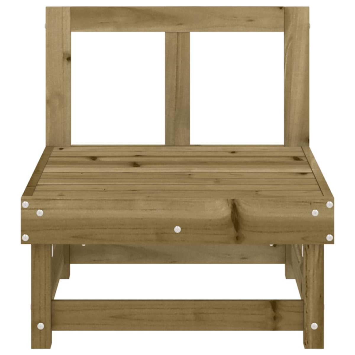 This wooden garden middle sofa with slatted design will make a great addition to your garden, patio, or terrace for enjoying a cosy time with your family or friends. Impregnated wood: Solid pine wood is a beautiful natural material. Pine wood has a straight grain, and the knots give the material its signature, rustic look. Impregnation is a preservation process that is carried out by using autoclaves. The pressure-treatment increases resistance to decay and weather.Sturdy and stable frame: The wooden frame makes the garden sofa sturdy and stable for daily outdoor use.Comfortable seat experience: The backrest adds extra seating comfort for the outdoor sofa. Modular design: The sectional sofa is flexible and easy to move around. You can combine it with other modular segments available in the drop-down menu to create your own personal garden lounge set configurations! Good to know:To make sure your outdoor furniture stays beautiful, we recommend protecting it with a waterproof cover.