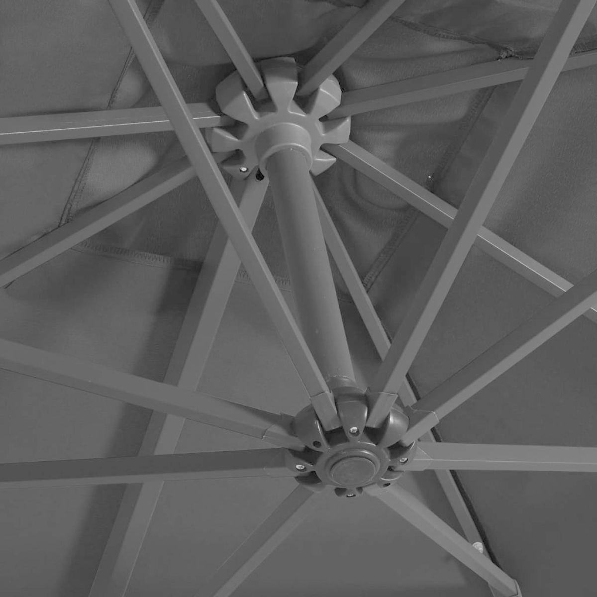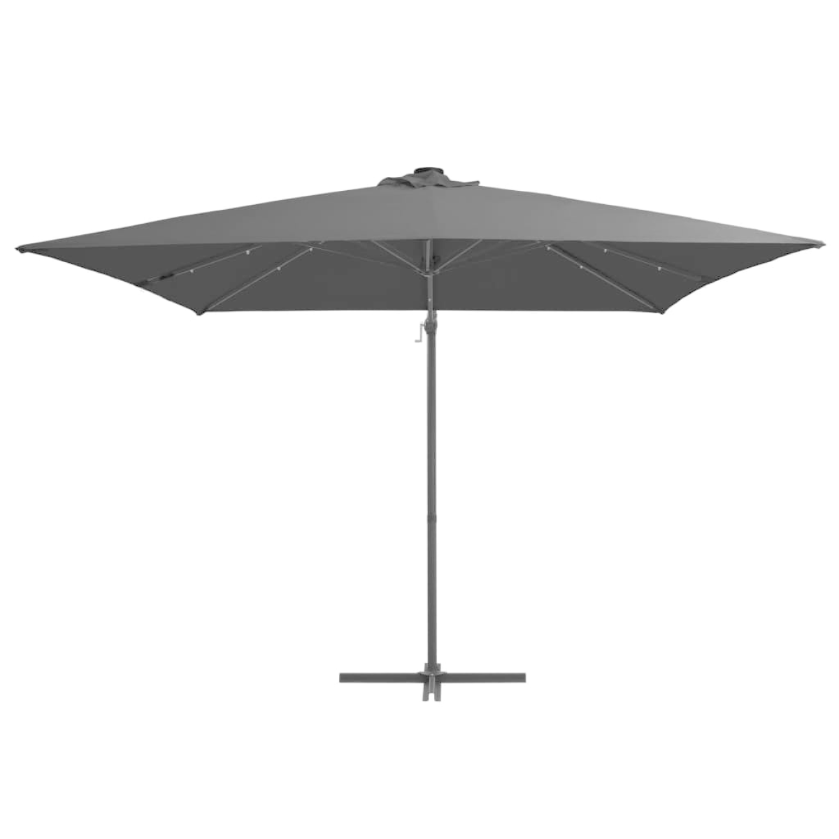 This elegant hanging parasol with LED lights is perfect to create some shade and protect you from the sun's harmful UV rays. Made of UV protective and anti-fade polyester, the parasol cover provides you with optimum protection against the sun and is easy to clean. It features 24 solar-powered LEDs to automatically illuminate your outdoor living space and create a cosy and romantic ambience when the sun goes down. It comes with a sturdy cross base to add stability. The exclusive design of this parasol allows you to tilt and rotate it in 360 degrees to block the sun. The strong steel pole, along with the 8 durable ribs, makes the parasol very stable and durable. Our garden umbrella can be easily opened and closed thanks to the crank mechanism. The item is easy to assemble. Please note that we recommend treating the umbrella fabric with a waterproofing spray if it is subjected to heavy rainfall.