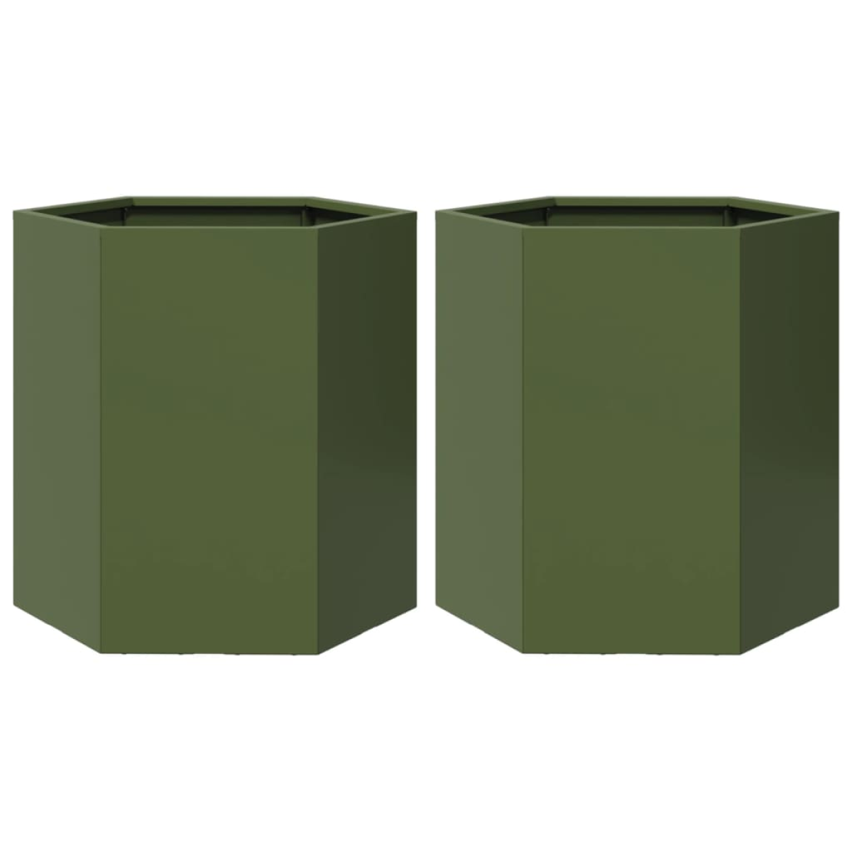 vidaXL Garden Planter 2 pcs Olive Green Hexagon 46x40x45 cm Steel