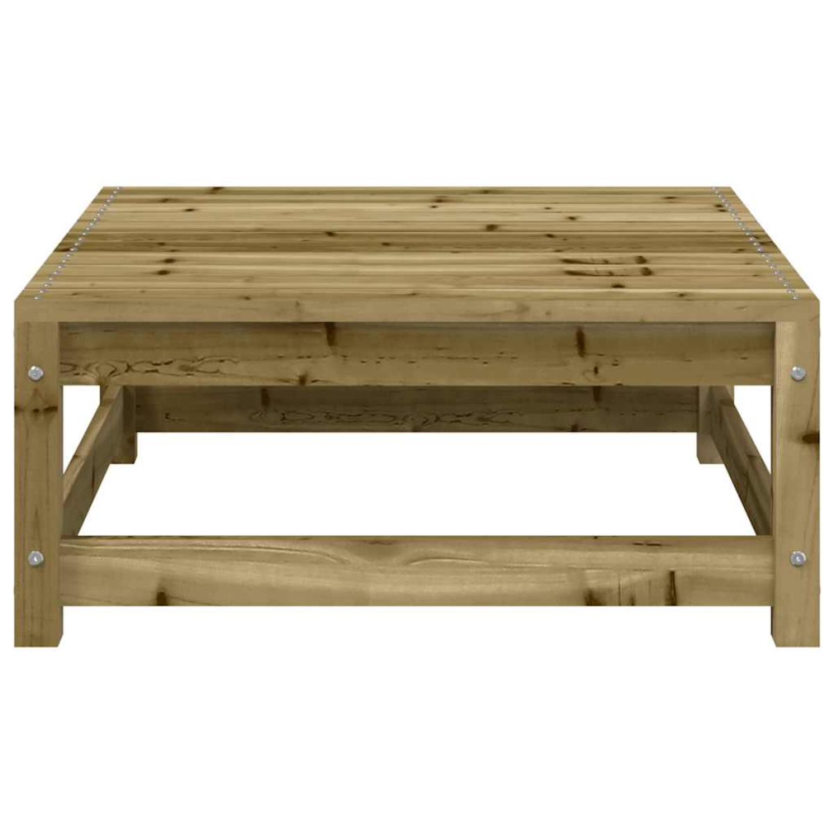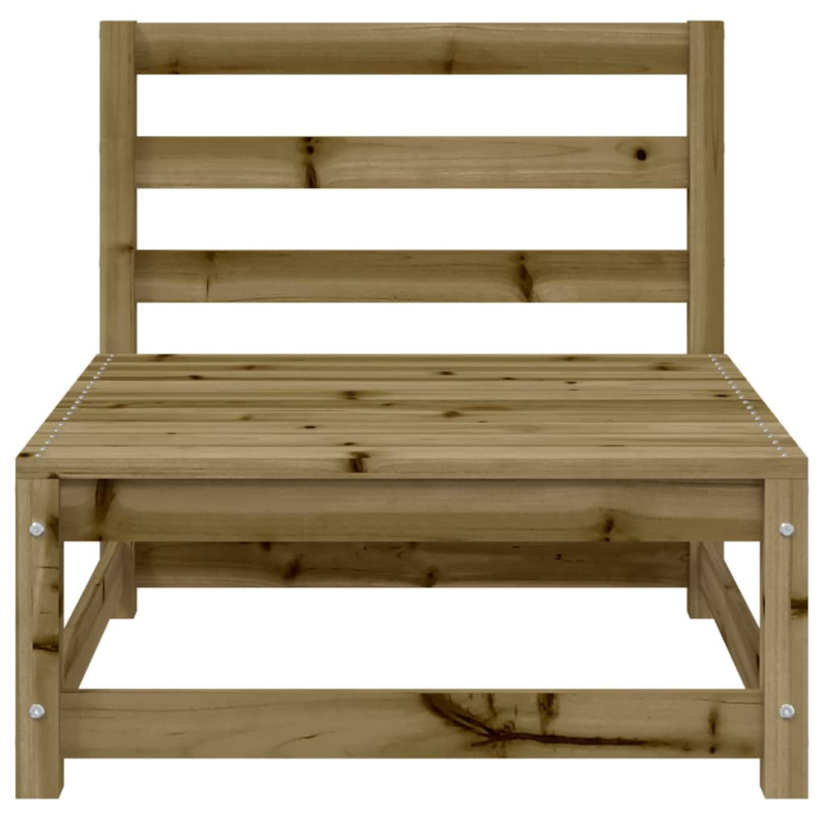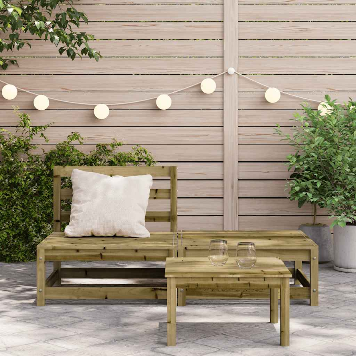 This wooden garden sofa with footstool will make a great addition to your garden, terrace, or patio for chatting with family and friends or just enjoying the weather. Impregnated wood: Solid pine wood is a beautiful natural material. Pine wood has a straight grain, and the knots give the material its signature, rustic look. Impregnation is a preservation process that is carried out by using autoclaves. The pressure-treatment increases resistance to decay and weather.Comfortable seat experience: The backrest adds extra seating comfort for the single sofa.Versatile usage: This outdoor footstool can not only be used to sit or relax your feet, but it can also be used as a coffee table to hold your placed drinks, food, and other decorations.Slatted design: The slatted design of the outdoor sofa effectively prevents water from pooling, ensuring that the seat remains dry and free from potential rot.Modular design: This patio sofa features a modular design, making it completely flexible and easy to move around to suit any setting. You can combine it with other modular segments available in the drop-down menu to create your own personal garden lounge set configurations! Good to know:To make sure your outdoor furniture stays beautiful, we recommend protecting it with a waterproof cover.