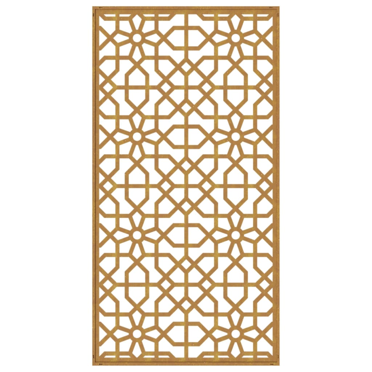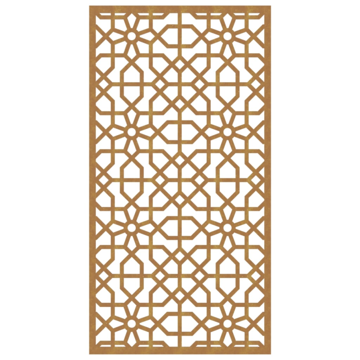 Turn a blank wall or fence into a masterpiece with this garden wall decoration. Durable material: Corten steel, also known as weathering steel. This is anti-corrosive by its very nature. It develops a rusty protective layer against corrosion when first exposed to atmospheric conditions. Thus, you don't need to paint it. This can help you save on maintenance and repair costs. The distinctive brown colour on the corten steel will surely be an eye-catcher. Finally, weathering steel is exceptionally durable and will stand up to the test of time.Exquisite design: The metal wall decoration adopts a hollow design of the Moorish pattern, making your garden more attractive.Easy installation: The outdoor wall decoration is easy to install with the mounting holes on the back. Good to know:This product is not rusted yet and has a normal metal colour when you receive it, but rust will develop over time. You could speed up the rusting process by spraying it with soap water and salt water. To keep your clothes stain-free, avoid contact with the developing rust layer.