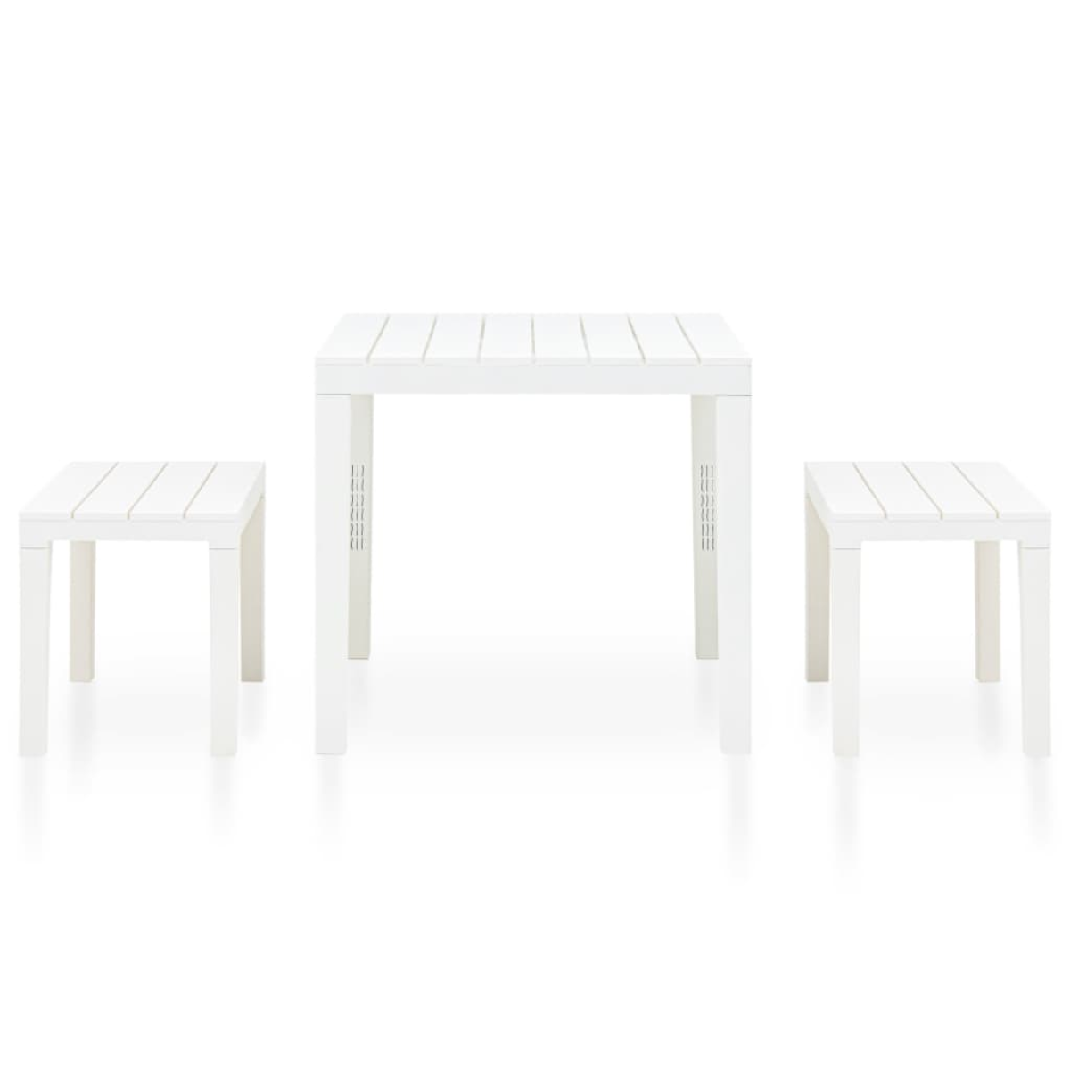 vidaXL Garden Table with 2 Benches Plastic White