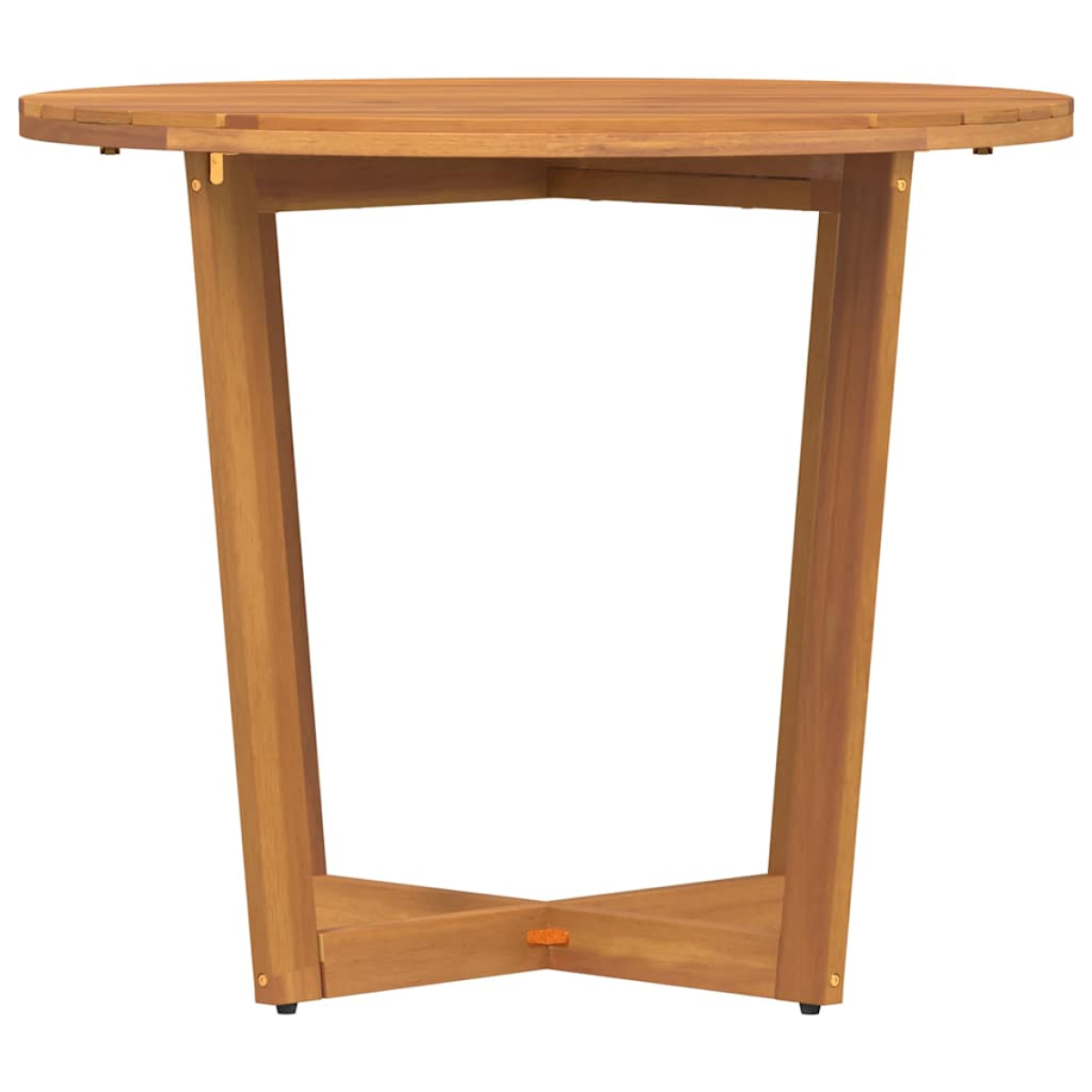 This garden dining table is perfect for patios, gardens, and outdoor spaces, offering a practical and inviting area for family and friends to relax, dine, or enjoy quality time together. Robust and stable material: Solid acacia wood is renowned for its strength and durability, complemented by unique grain patterns that enhance its visual appeal. Finished with a protective oil layer, the table is designed for outdoor use, offering resistance to the elements while preserving its beautiful wood grain.Stable tabletop: The sturdy surface with slats design provides reliable support for holding drinks, snacks, fruit baskets, or your favourite decorations.Sturdy cross-leg structure: The sturdy cross-leg base enhances stability, offering reliable support for daily use without compromising on style.Slatted tabletop for a timeless look: The slatted surface, featuring natural wood grains, adds a touch of classic elegance, making it perfect for both decorative and functional use.Wide application: Perfect for various outdoor settings, this table is versatile enough for patios, gardens, balconies, and terraces. Ideal for dining, relaxing, or entertaining, it adapts to your needs for any outdoor occasion. Good to know:To make sure your outdoor furniture stays beautiful, we recommend protecting it with a waterproof cover.