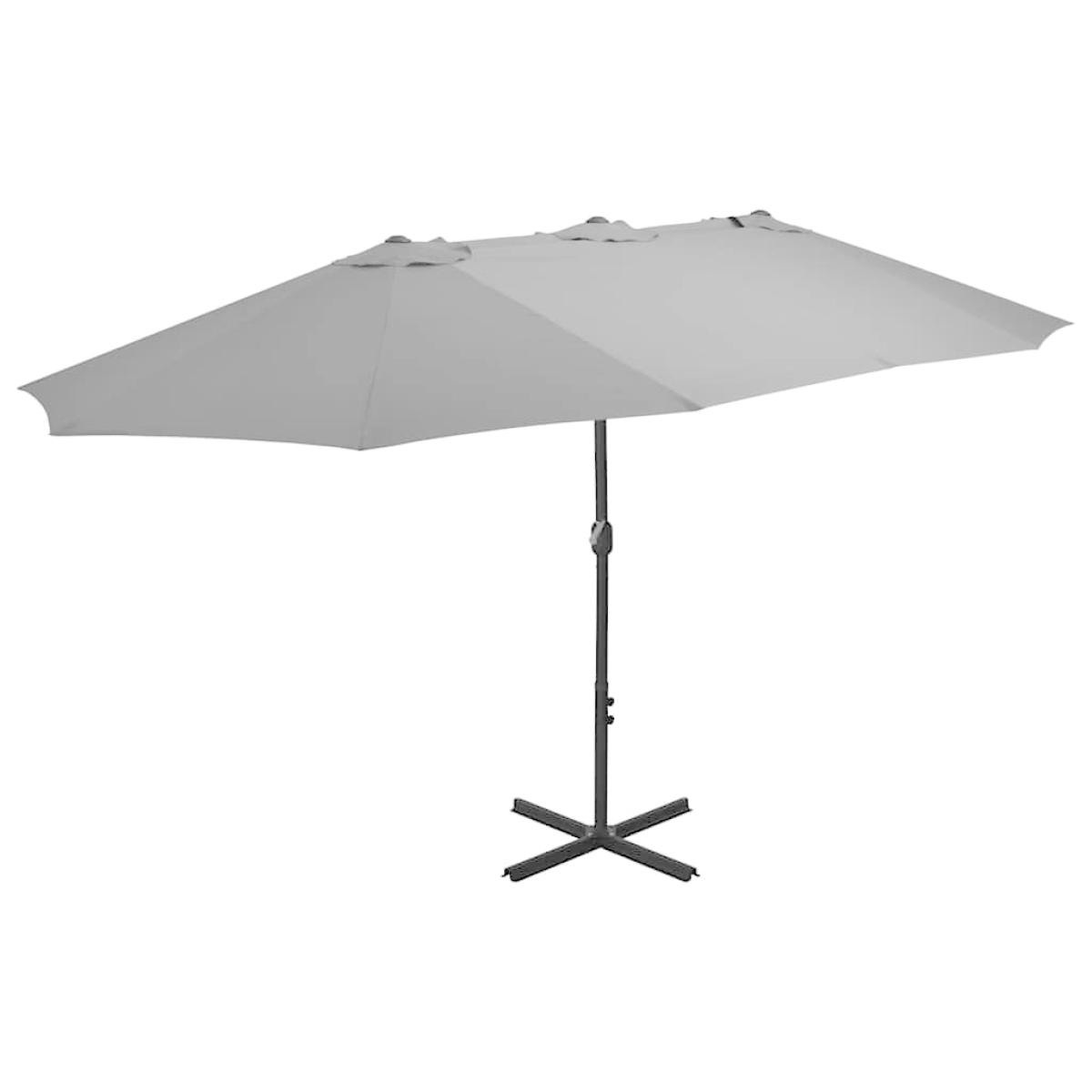 This elegant garden parasol is a perfect choice for creating some shade and protecting you from the sun's harmful UV rays. Made of UV protective and anti-fade polyester, the parasol cover provides you with optimum protection against the sun and is easy to clean. It features a sturdy cross base to add stability. The exclusive design of this parasol offers extra large space to block the sun. The strong aluminium pole, along with the 12 durable ribs, makes the parasol very stable and durable. The garden parasol can be easily opened and closed thanks to the crank mechanism. The item is easy to assemble. Please note that we recommend treating the parasol fabric with a waterproofing spray if it is subjected to heavy rainfall.