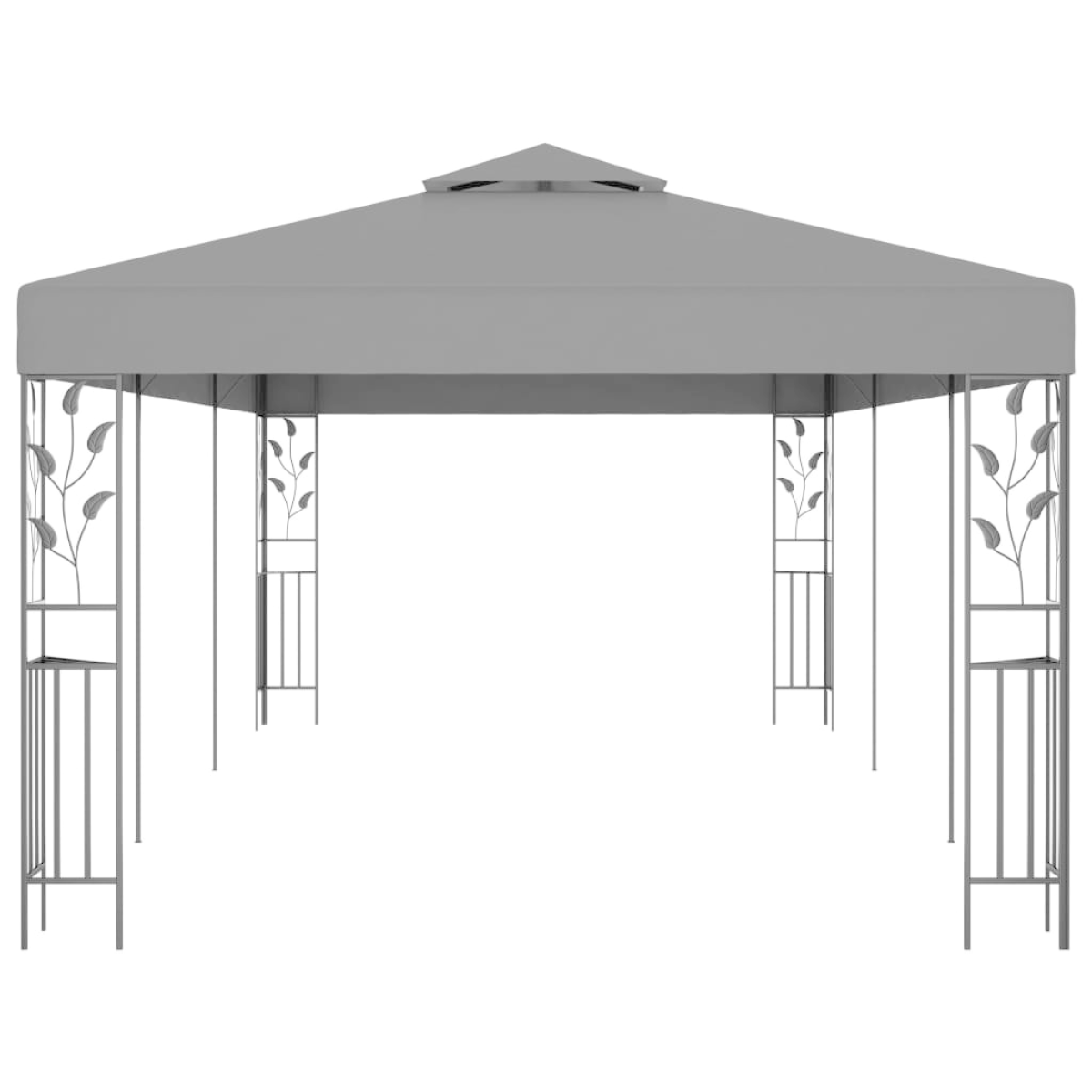This spacious gazebo with ornate floral details will truly make an elegant addition to your outdoor living space. The vented garden marquee will ideally prevent the sun and rain from spoiling the fun at family gatherings, barbecues, afternoon picnics, and birthday parties. The party tent has a powder-coated steel construction with ornate floral details, as well as a polyester roof with PA coating, enabling it UV- and water-resistant. Thanks to the canopy's reinforced corners as well as hook and loop fasteners, they empower it to be easily attached to the gazebo's frame. NOTE: This product should NEVER be used under bad weather, such as strong wind, heavy rain, snow, storm, etc.