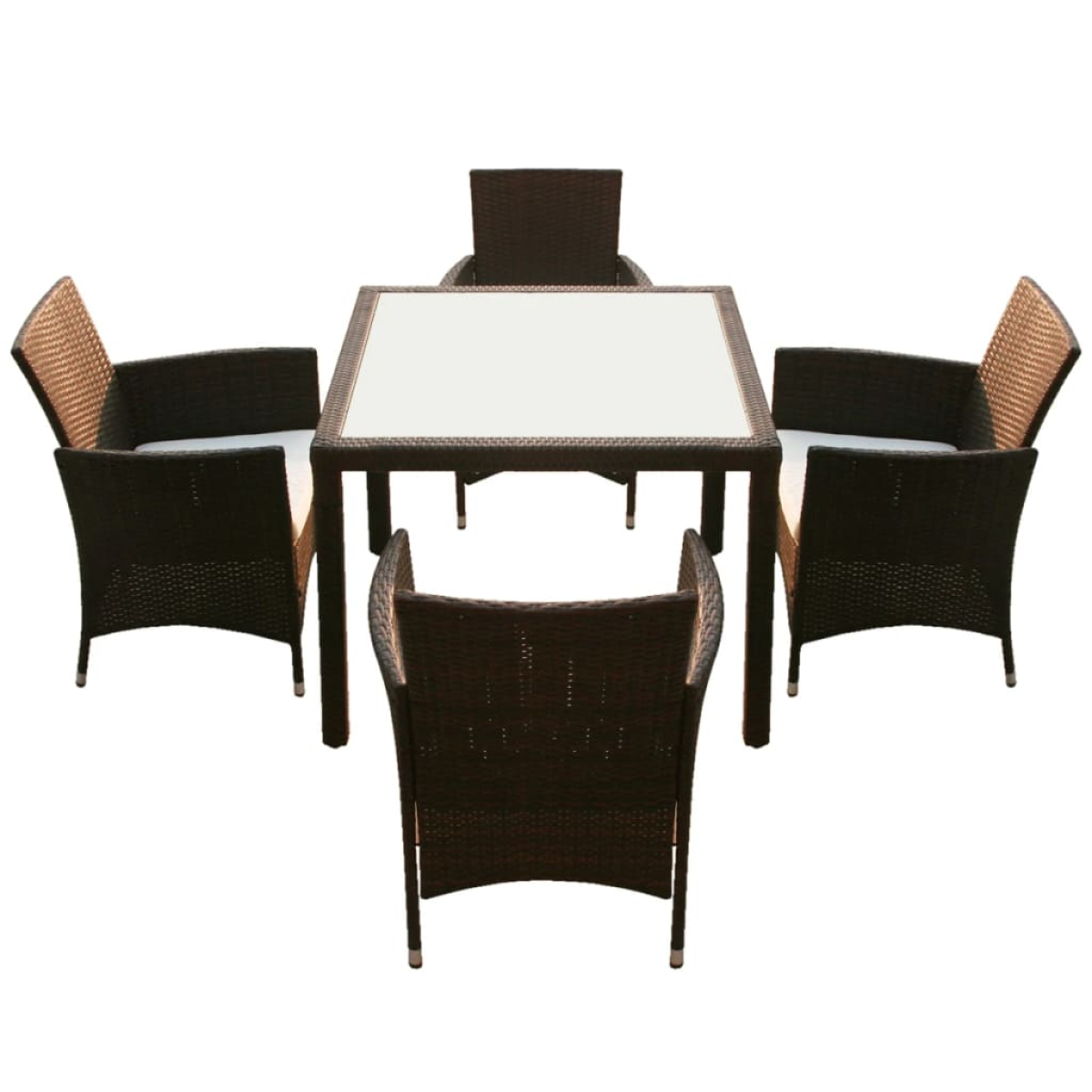 vidaXL 5 Piece Outdoor Dining Set with Cushions Poly Rattan Brown