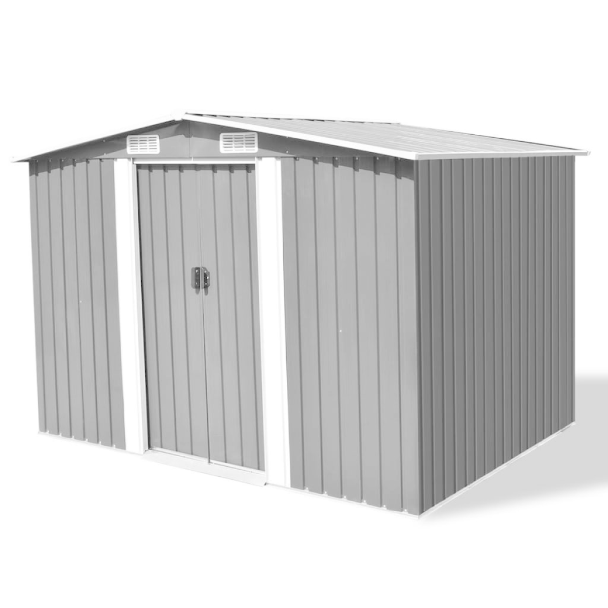 This metal storage shed will be perfect for storing a wide variety of tools and equipment. This storage shed has 4 vents, 2 in the front and 2 in the rear, ensuring excellent ventilation. The double sliding doors in the front allow easy entry and exit. The galvanised steel construction makes it durable and strong, so it won't corrode or be otherwise affected by extreme weather. It also includes a steel floor frame which adds stability and is perfect for a wood floor finish (wood not included). The pre-cut, pre-drilled parts and the included instruction manual ensure fast and easy assembly.
