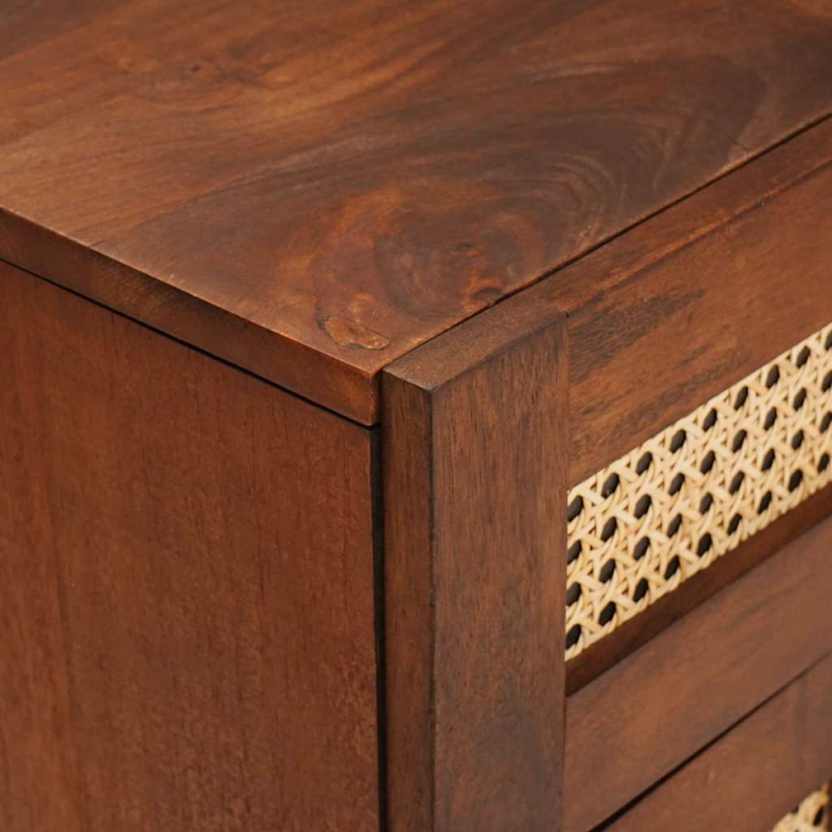 This bedside table is all about style and function in a compact package. Crafted from solid mango wood and cane, it gives off a natural vibe that fits into all sorts of interior styles while offering practical storage. Solid Mango Wood: This bedside table is made from solid mango wood, famed for its durability and unique grain patterns, adding to its charm. It's built to last, bringing a stylish touch to your bedroom. Efficient Storage Options: With specific storage spots and a lower shelf, this table keeps your personal items like books, glasses, or a lamp tidy and close at hand for an organised bedtime routine. Natural Cane Detailing: The lovely cane detail gives it an airy feel and a nice contrast to the solid wood, letting light bounce around and enhancing its handcrafted look. Rectangular Form: The neat rectangular shape slots in perfectly beside your bed, providing a solid base for a lamp or alarm clock. It’s compact enough for tighter spaces while still offering room for your everyday items. Indoor Use: Exclusively made for indoors, this table fits into various room styles, from rustic to modern, making it a versatile addition to your home.
