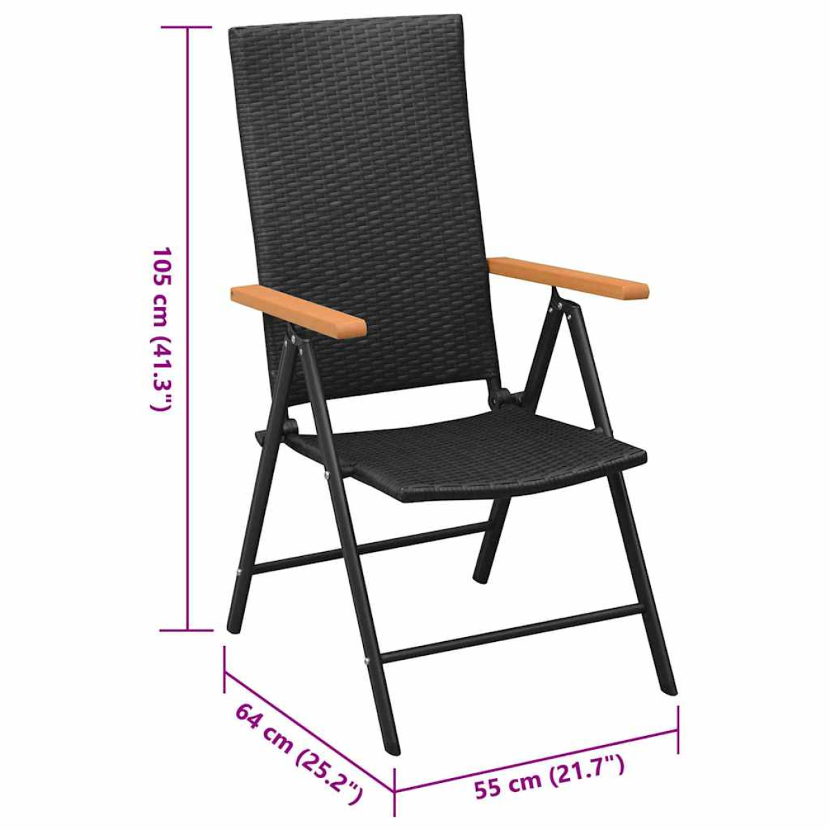 This garden chair set is ideal for use in your garden, terrace or patio. The chairs are made of high-quality PE rattan, which is durable and weather resistant. The powder-coated aluminium frames make the chairs very sturdy. The brown WPC armrests add to the chairs' stylish look. The chairs' backrests are with 7 reclining settings, so you can always find the most comfortable seating position. The chairs can be folded to save space when not in use. Assembly is easy. Delivery includes 2 folding chairs.