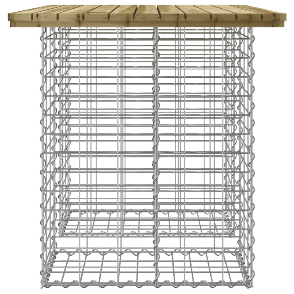 Create your own outdoor seating space with this garden bench! This garden bench will be a real eye-catcher in your outdoor living space. Impregnated wood: This top of the garden seat is made of vacuum pressure impregnated pinewood for durability. Solid pine wood is a beautiful natural material. It has a straight grain, and the knots give the material its signature, rustic look. Impregnation is a preservation process that is carried out by using autoclaves. The pressure-treatment increases resistance to decay and weather.Sturdy and stable base: This outdoor bench features a galvanised steel gabion basket base that is designed to be filled with rocks and gravels for additional beauty. The mesh grid of gabion basket is welded with transverse and longitudinal wires at every intersection for extra stability.Compact design: This garden bench seat is perfect for a limited space thanks to its narrow and compact design.Wide range of uses: This park bench is suitable for gardens, backyards, patio spaces, secret corner locations and more. Good to know:To make sure your outdoor furniture stays beautiful, we recommend protecting it with a waterproof cover.