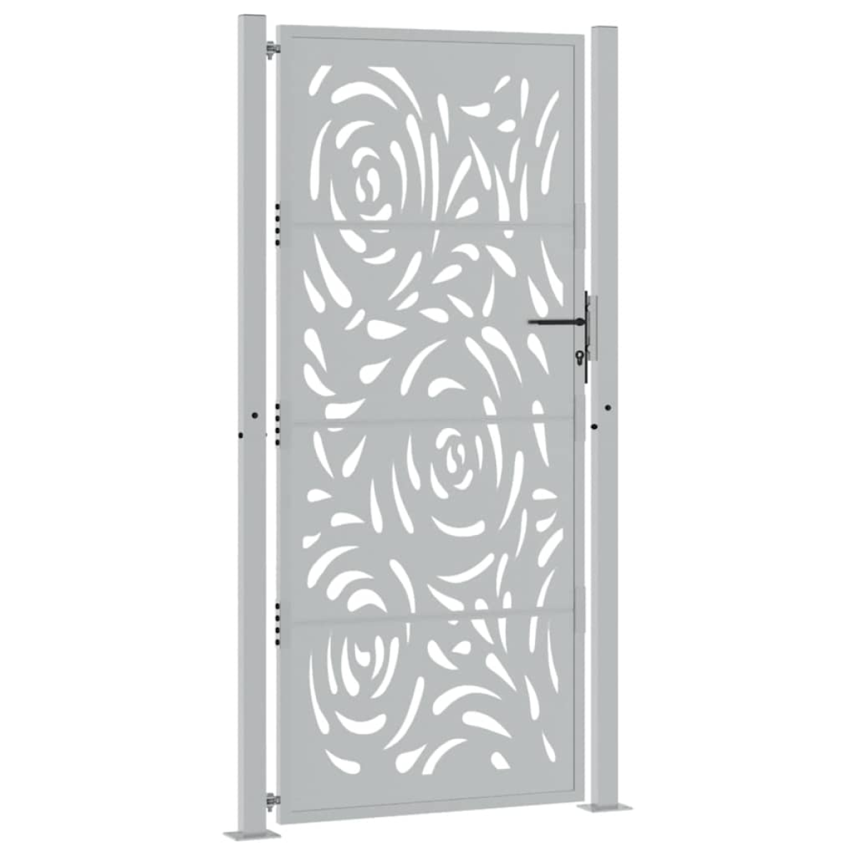 This garden gate, featuring a perfect combination of strength and elegance, makes an ideal entry point for the fence around your garden or patio. Heavy-duty construction: This fence gate is made of weathering steel. Weathering steel is anti-corrosive by its very nature. It develops a rusty protective layer against corrosion when first exposed to atmospheric conditions. Thus, you don't need to paint it. This can help you save on maintenance and repair costs. The distinctive brown colour on the weathering steel will surely be an eye-catcher. Finally, weathering steel is exceptionally durable and will stand up to the test of time.Laser-cut design: The security gate has a beautiful laser-cut design that adds a unique charm to your home.Lockable design: The outdoor gate is equipped with a robust locking system that comes with three matching keys, guaranteeing that the patio gate can be securely locked.Easy to assemble: The entrance gate comes complete with two posts with flange plates and mounting accessories for easy installation.Wide applications: The metal gate is perfect for enhancing garden entrances, driveways, and any property boundaries, combining functionality and visual appeal. Good to know:This product is not rusted yet and has a normal metal colour when you receive it, but rust will develop over time. You could speed up the rusting process by spraying it with soap water and salt water. To keep your clothes stain-free, avoid contact with the developing rust layer.