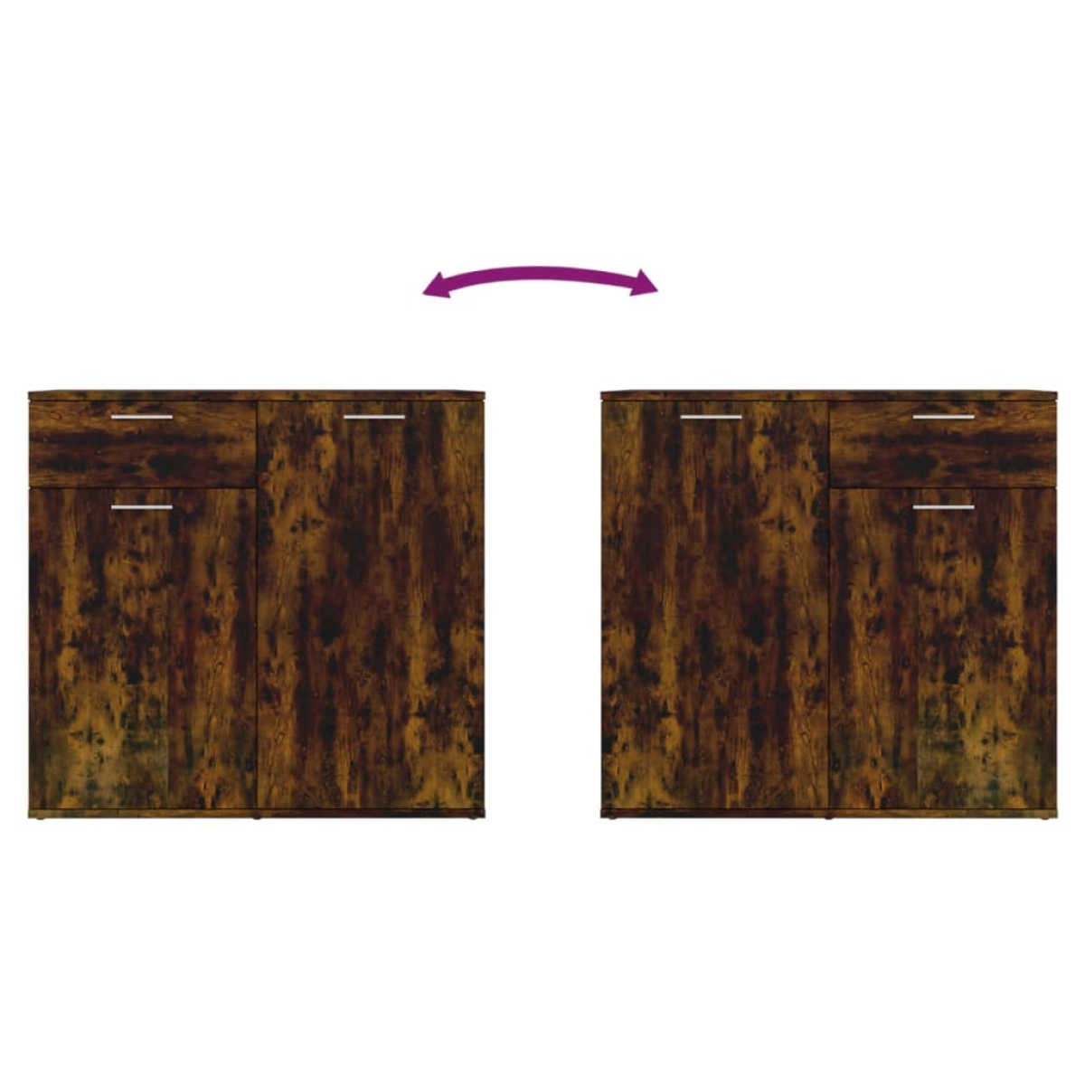 Featuring minimalist charm, this sideboard will satisfy your various requirements and be an ideal complement in your room. Easy-to-clean material: Made of engineered wood, the highboard is easy-to-clean. The engineered wood is of exceptional quality with smooth surface and also features strength, stability and resistance to moisture.Flexible design: You can assemble the door and drawer on the left side or right side to your liking.Ample storage space: The storage space makes this sideboard easy to keep things organised.Multifunctional cabinet: The sturdy tabletop is ideal for displaying decorative objects, photo frames, or potted plants. It can also be used as a console cabinet, side cabinet, etc. WARNING:In order to prevent overturning, this product must be used with the wall attachment device provided.
