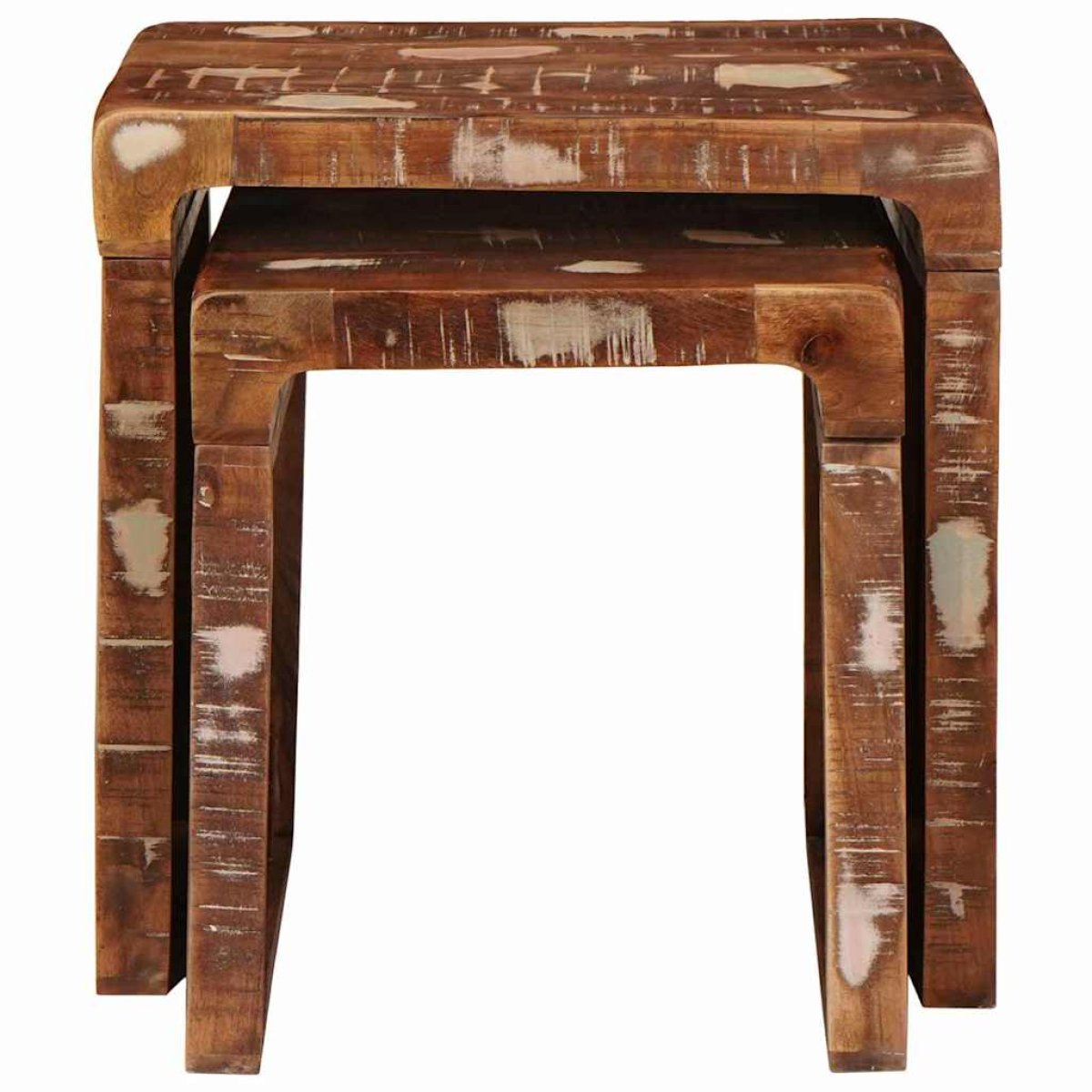 This rustic stackable end table set is a great mix of style and function for your living space. With its smooth feel and rectangular shape, you get a solid surface for all sorts of things while adding that rustic charm to your home decor. Made for practicality, it’s perfect for those who care about looks as much as they do about how their furniture works. Picture it in your living room or bedroom as a handy spot for lamps, drinks, or decor, fitting right in with everything else in the room. u003culu003eu003cliu003eu003cbu003eRustic Handmade Craft:u003c/bu003e This table showcases handmade craftsmanship, bringing a warm rustic feel to your home. Sturdy and well-made, it fits in with different styles while the opaque finish makes it stand out as a timeless piece.u003c/liu003eu003cliu003eu003cbu003eSturdy Square Legs:u003c/bu003e The simple square legs give it extra stability, so it stays put. Each leg is built to last, making sure the table holds up whether you’re using it for decor or everyday stuff.u003c/liu003eu003cliu003eu003cbu003ePractical Stackable Feature:u003c/bu003e With its stackable design, you can easily store it when you’re not using it. This is great for reorganising and managing space in smaller places, making it super handy for modern homes or flats.u003c/liu003eu003cliu003eu003cbu003eIndoor Utility:u003c/bu003e Made specifically for indoor use, this table fits in all sorts of rooms, from living rooms to bedrooms, working great for holding lamps, plants, or personal bits and bobs, blending in effortlessly with any indoor setting.u003c/liu003eu003cliu003eu003cbu003eCare Instructions:u003c/bu003e To keep it looking good, avoid direct sunlight and use coasters for drinks. These tips will help maintain its appearance and prevent damage, ensuring it stays a beloved part of your home for years.u003c/liu003eu003c/ulu003e