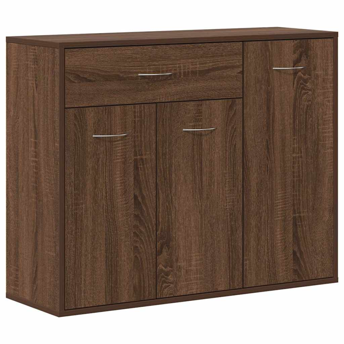 This sideboard, featuring a minimalist design, will make a practical as well as a highly decorative addition to your home! Premium material: The engineered wood is of exceptional quality with smooth surface and also features strength, stability and resistance to moisture.Spacious storage: Features four compartments, the cabinet provides ample storage space for books, multimedia appliances and other items.Displaying function: The top of this sideboard cabinet is ideal for displaying decorative objects, photo frames, or potted plants.Easy-clean surface: The surface of this cupboard is easy to clean. Warning: In order to prevent overturning, this product must be used with the wall attachment device provided. Note:Each product comes with an assembly manual in the box for easy assembly.
