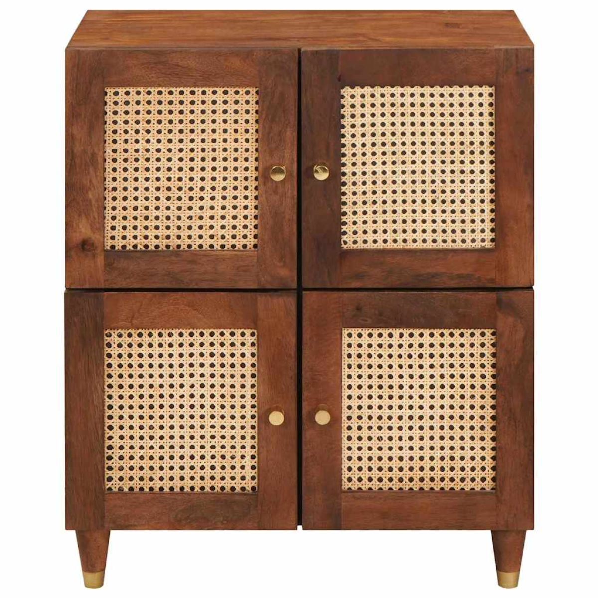 The Rectangular Solid Wood Sideboard is a fab and functional piece for any dining or living area. Made with a mix of solid mango wood and textured cane, it gives off a warm, earthy vibe that’ll brighten up your space. With a keen eye for detail and quality materials, this sideboard fits in perfectly with both modern and traditional styles, making it a versatile addition for any home. Fade Resistant Finish This sideboard's fade-resistant feature helps it keep its lovely colour, protecting against sunlight and wear over time. It’s a solid investment, keeping your home looking sharp. Solid Mango Wood The sturdy solid mango wood serves as a strong base for the sideboard. Known for its durability and stability, this wood type supports the furniture's weight and keeps its shape, making it sturdy even in busy areas like living and dining rooms. Textured Cane Material The textured cane accents give a touch of natural beauty and tactile interest. This material complements the solid wood's look, adding a stylish contrast and enhancing the furniture's depth. Comprehensive Storage With multiple doors and compartments, you'll have plenty of storage space for organizing your dining and living essentials. This highlights how adaptable the piece is for different spaces. Wall Attachment Device It comes with a handy wall attachment to stop it from tipping over, adding safety for homes with children or pets, and giving you extra peace of mind.