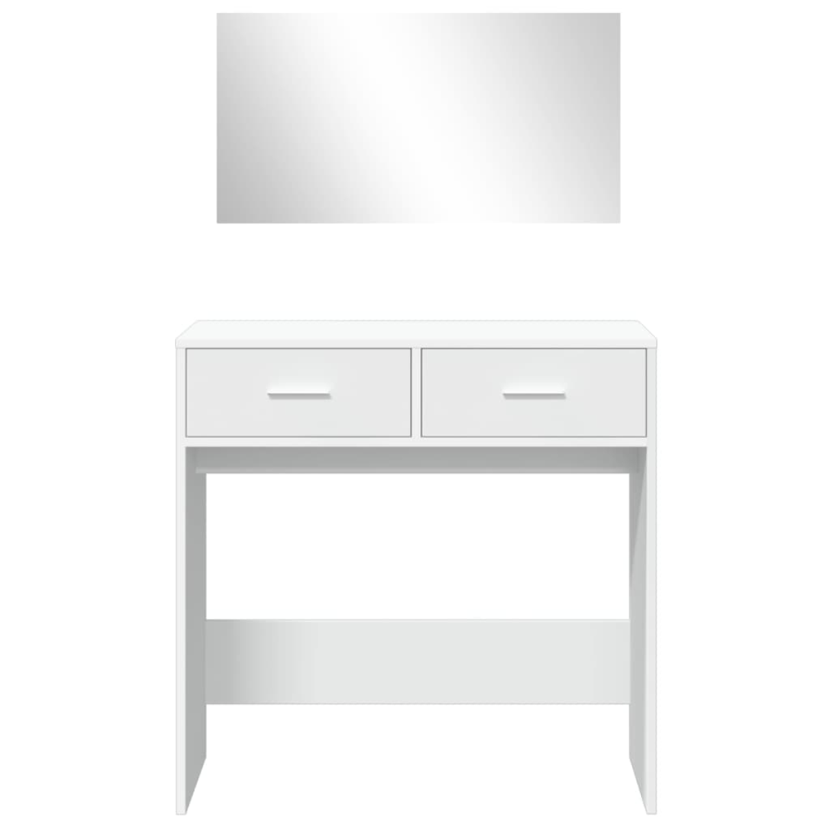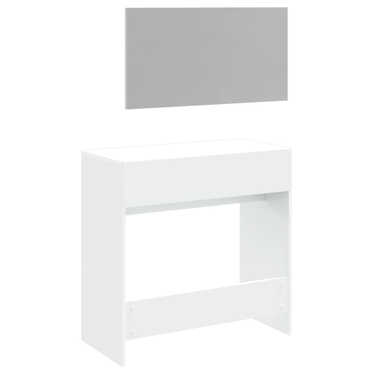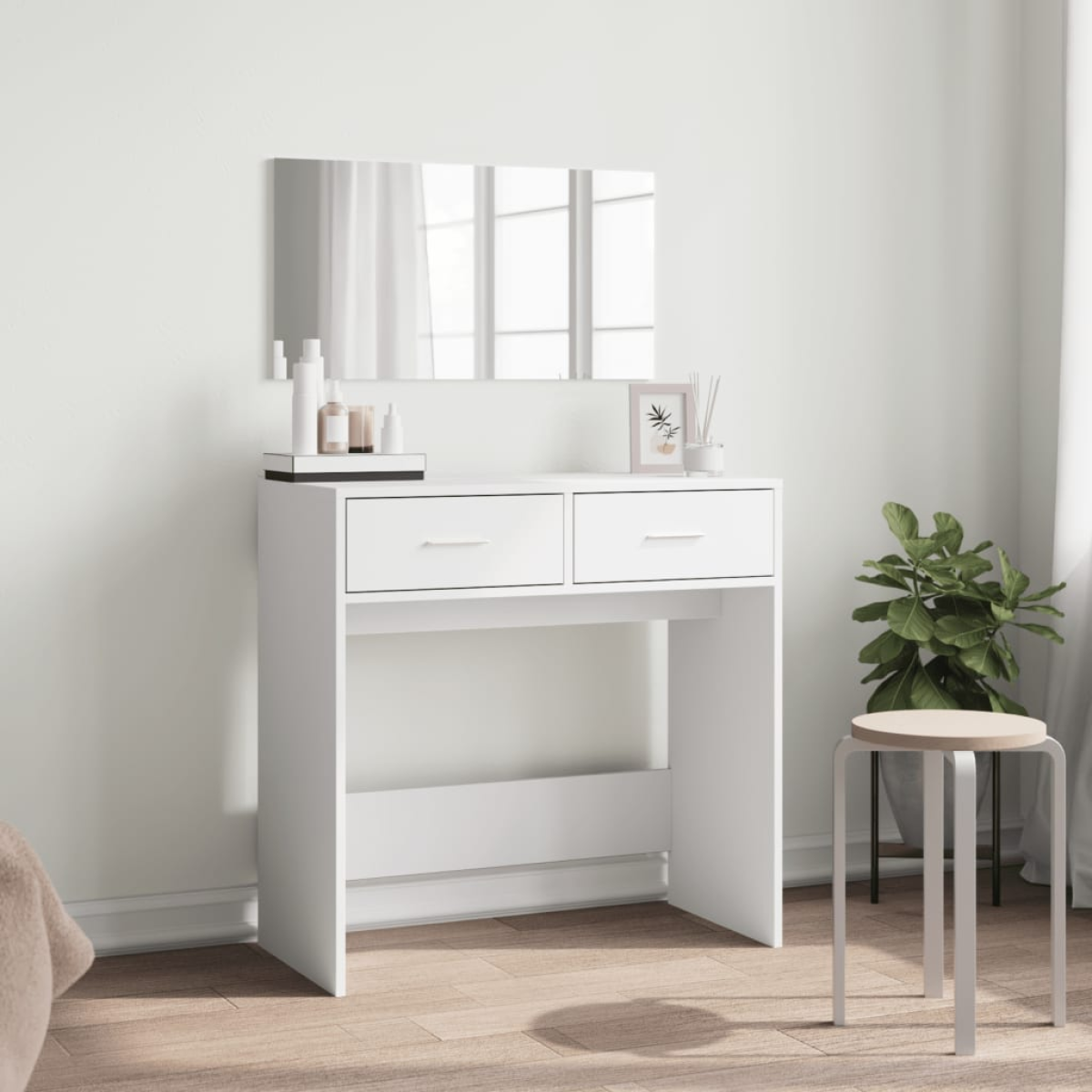 With refined straight lines and a symmetrical shape, this dressing table is sure to turn heads! Durable and sturdy material: The engineered wood is of exceptional quality with smooth surface and also features strength, stability and resistance to moisture.Utility mirror: The makeup table with the mirror is perfect for your daily beauty routine. The mirror allows you to take care of your facial skin and wear your makeup too!Ample storage space: The vanity table provides ample space for easy access to your make-up, jewellery and everyday essentials.Modern design: The modern design features clean lines and minimalistic looks as a part of the interior design style. Warning:To prevent it from tipping over, this product must be used with the provided wall attachment device.