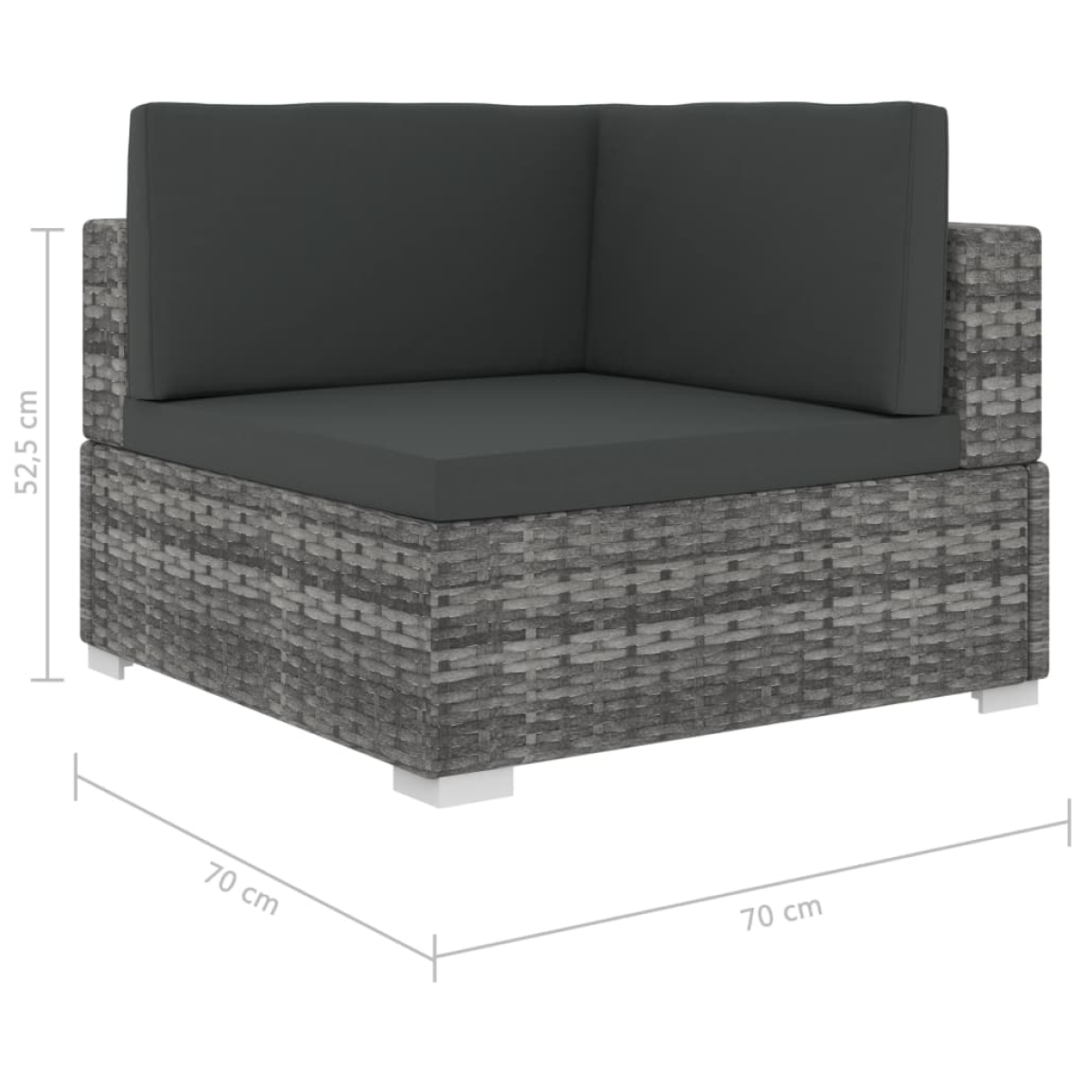 - Corner & centre seat dimensions: 70 x 70 x 52.5 cm (L x W x H)