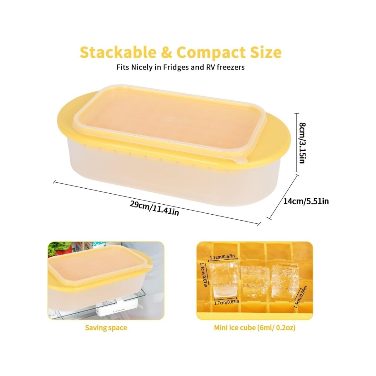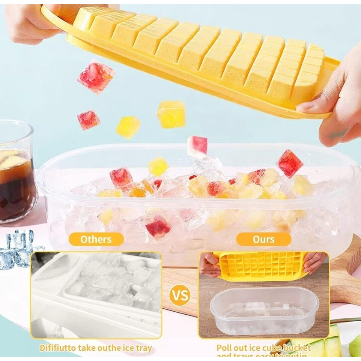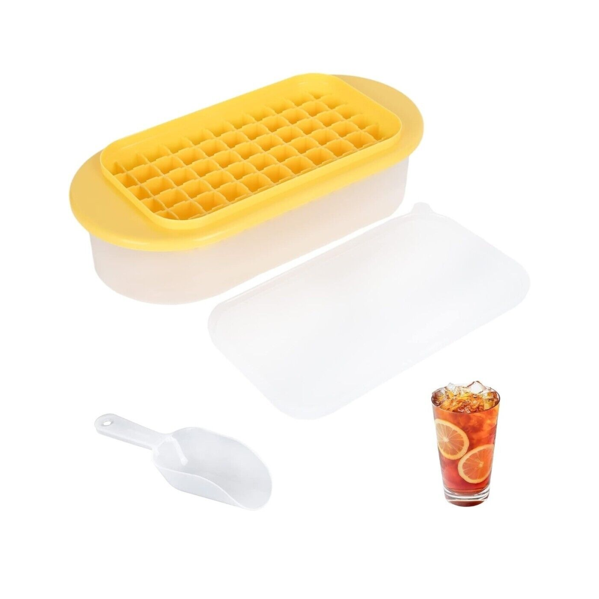 Ice Cube Trays with Lid and Storage Bin Easy Release Makes 66 Cubes - Yellow