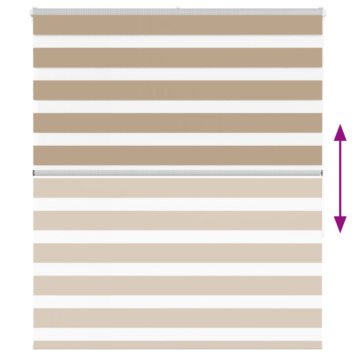 Elevate your room's style and functionality with this zebra blind, offering privacy and elegance. Durable and low maintenance: Made from 100% polyester, the zebra blind is built to last and resist wear and tear. They are also easy to clean, typically requiring light dusting or wiping with a damp cloth.Privacy and sun protection: The two-layer design features alternating transparent and opaque fabric panels. The light can be easily controlled using the chain hoist, allowing for seamless adjustment of the room's lighting from translucent to fully darkened.Two assembly ways: You can attach the zebra roller blind to the wall or window with screws or without drilling using clamping brackets, depending on your needs.Elegant design: Thanks to its sleek and modern pattern design, this zebra roller blind effortlessly complements a variety of room decor. You can use it in the living room, bedroom, office, and so on.Child safety and adjustability: The roller blind includes a chain connector that makes it easy to adjust the height according to your needs, and it also has a cord clip to add child safety. Warning:Keep cords out of the reach of young children. Cords may become wrapped around a child’s neck. Good to know:Before buying blinds, start by measuring your window glass. Just a friendly tip: the fabric is a bit narrower than the total width, including the brackets.To make sure your new blinds provide complete coverage, just add 4,1 cm to the width of the window glass when calculating what to order.