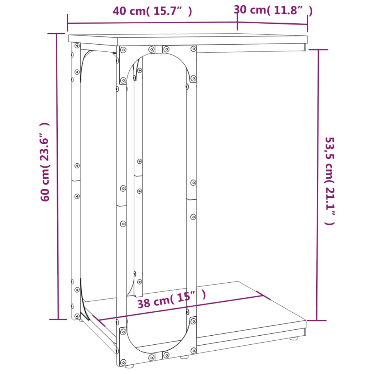 Give your living room a unique industrial makeover with this stylish side table! Sturdy material: The engineered wood is of exceptional quality with smooth surface and also features strength, stability and resistance to moisture.Storage function: The coffee table provides ample storage space for keeping your magazines, books, remote controls and other small items well organised and within reach.Practical top: The sturdy tabletop is perfect for placing your drinks, food and other decorative items.Stable frame: The steel frame of the table ensures sturdiness and stability.C-shape design: The C-shaped design allows you to easily place the lower part of the lamp table under sofas, beds, tables and loungers, saving space and making it convenient to use. Note:Each product comes with an assembly manual in the box for easy assembly.