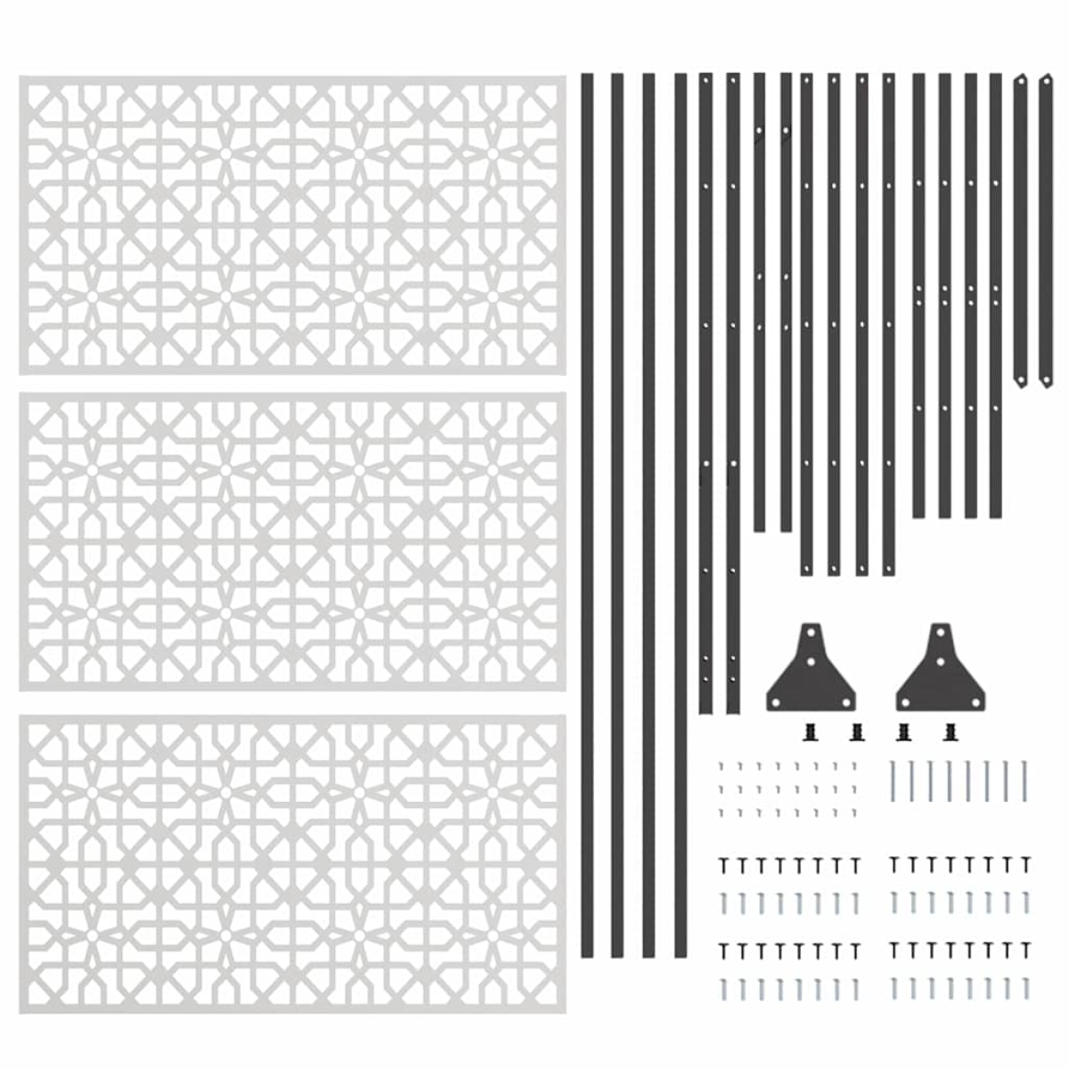 This Privacy Screen gives your garden, terrace, or backyard a fresh vibe. With its solid rectangular shape, it’s super adaptable and fits various outdoor layouts while staying sleek and stylish. It’s perfect for creating cosy corners in open spaces, giving you the privacy you want without clashing with your modern outdoor decor. Made for outside use, it keeps things private while still looking good. Tough Steel Material: This privacy screen is made from strong steel that stands up to the weather. Its solid build ensures it keeps its shape and looks good, resisting wear and tear from the elements and protecting your private space over time. Rectangular Design: This screen’s rectangular shape adds a functional touch to any outdoor area. It's made to fit snug against walls, fences, or can stand alone as a feature piece. With its modern look, it really boosts the look of your garden or terrace. Modern Style: Showcasing a clean and chic design, the privacy screen has sharp lines and minimal fuss. It’s all about functionality with a touch of style, making it a great fit for minimalist outdoor settings and blending nicely with contemporary furniture. Durability Features: Built to last, the privacy screen is made for long-term use. Its steel structure can handle outdoor conditions, cutting down on the need for replacements and keeping you sorted for ages. Assembly Guidance: Comes with easy-to-follow instructions for quick setup by two people. This makes sure it's securely installed, giving you a safe and sound private outdoor area.