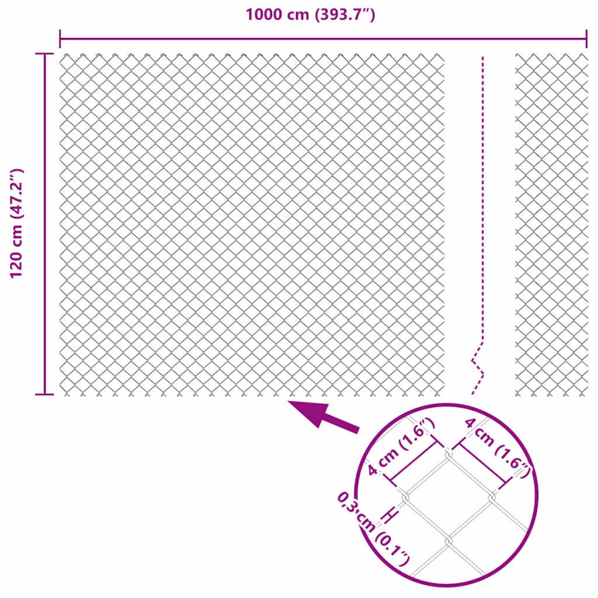 vidaXL Chain Link Fence Green 10 x 1.2 m Steel