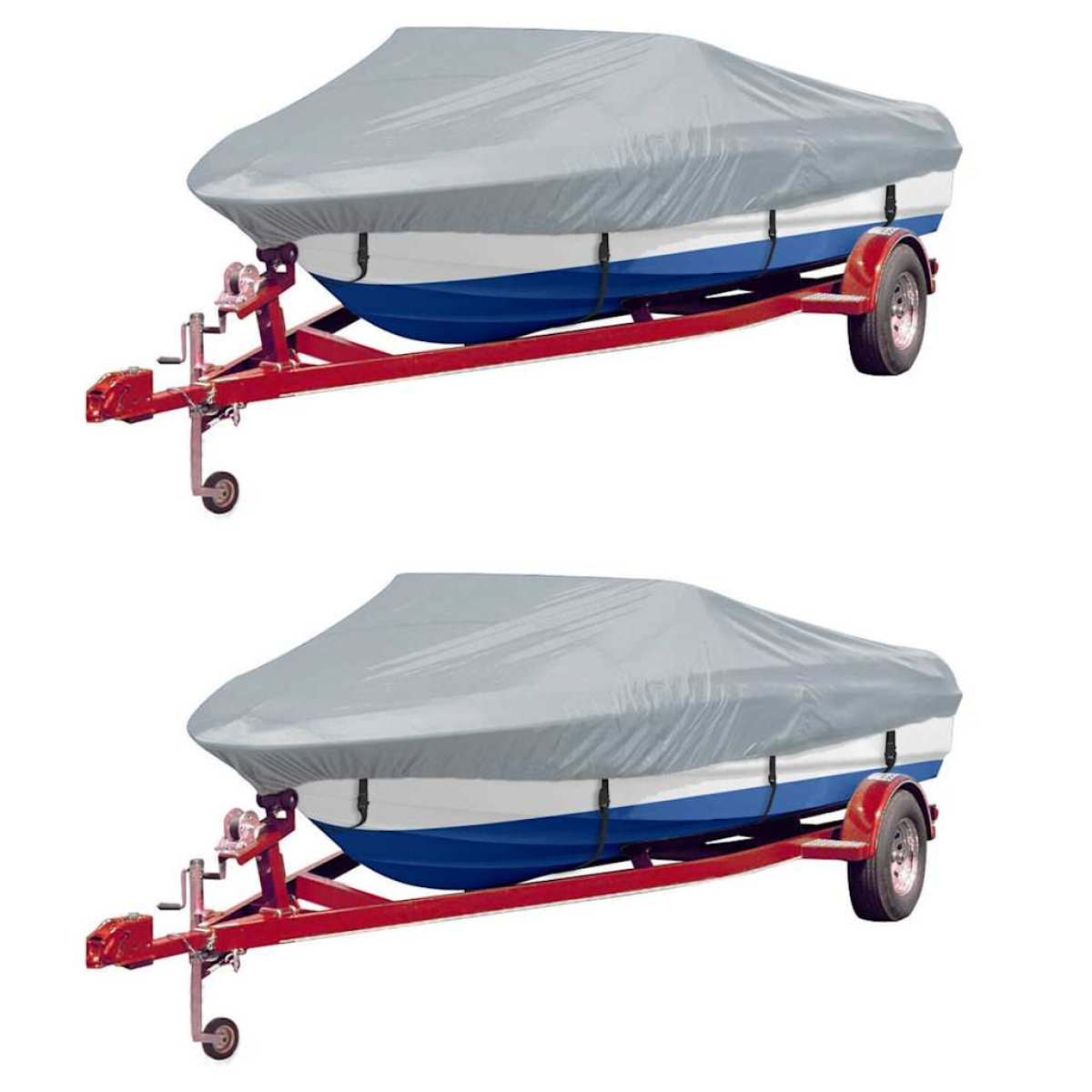 This boat cover can fit most common hull styles and sizes and is most suitable for mooring and storage applications. This cover is made of a durable pigment coated polyester fabric that is both mildew resistant and water repellent. Thanks to the double stitched interlock seams and the reinforced sewn-in elastic cord, this heavy duty boat cover is not only durable but also easy to fix on the boat. Delivery includes 2 boat covers