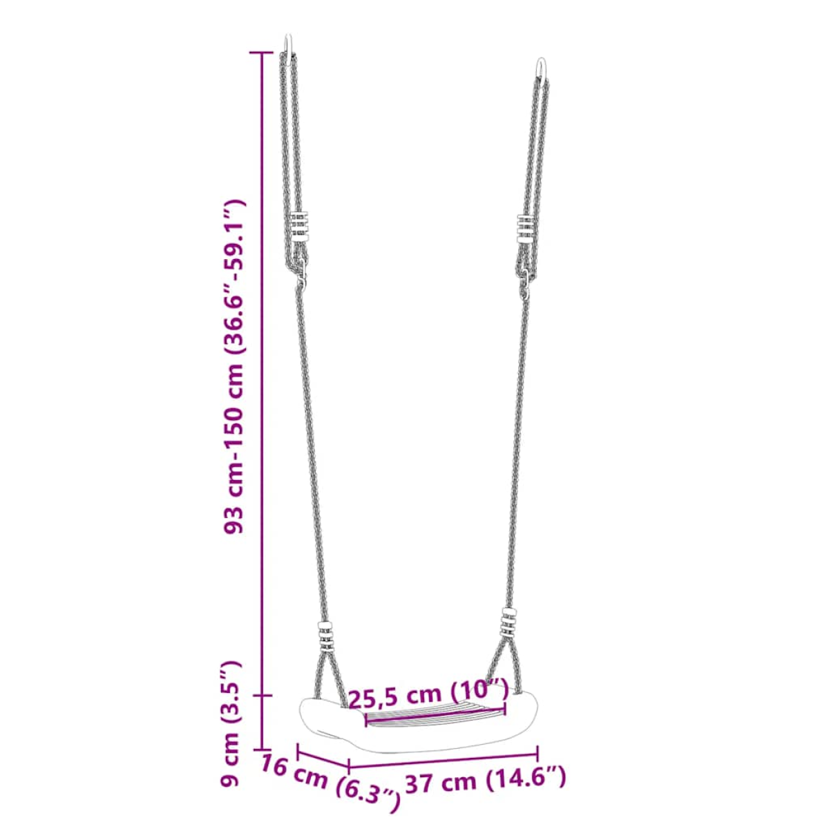 This outdoor swing seat is an ideal addition to any swing set or climbing frame. It's a great way for kids to have fun and stay active in their backyard. Child-friendly and safe: The ergonomically designed swing seat is lightweight and features a non-slip ridge surface for optimal grip. With its rounded corners and edges, the risk of injury is minimised even during active play. Adjustable rope length: This garden swing is designed to grow with your child, making it suitable for toddlers and growing kids alike. By adjusting the rope length, you can easily accommodate your child's changing needs. Safe and secure installation: This outdoor swing has sturdy metal mounting rings on the rope, ensuring a safe and secure attachment to any swing frame or other suitable fixtures. Weather-resistant and long-lasting: The water-resistant plastic seat, along with the rope and mounting accessories, ensures that the swing is weather-resistant and long-lasting, perfect for outdoor use. Good to know: For safety, please ensure that the swing is for one child at a time. The swing frame is sold separately. You can visit the store to find the matching swing frame to complete your swing set!