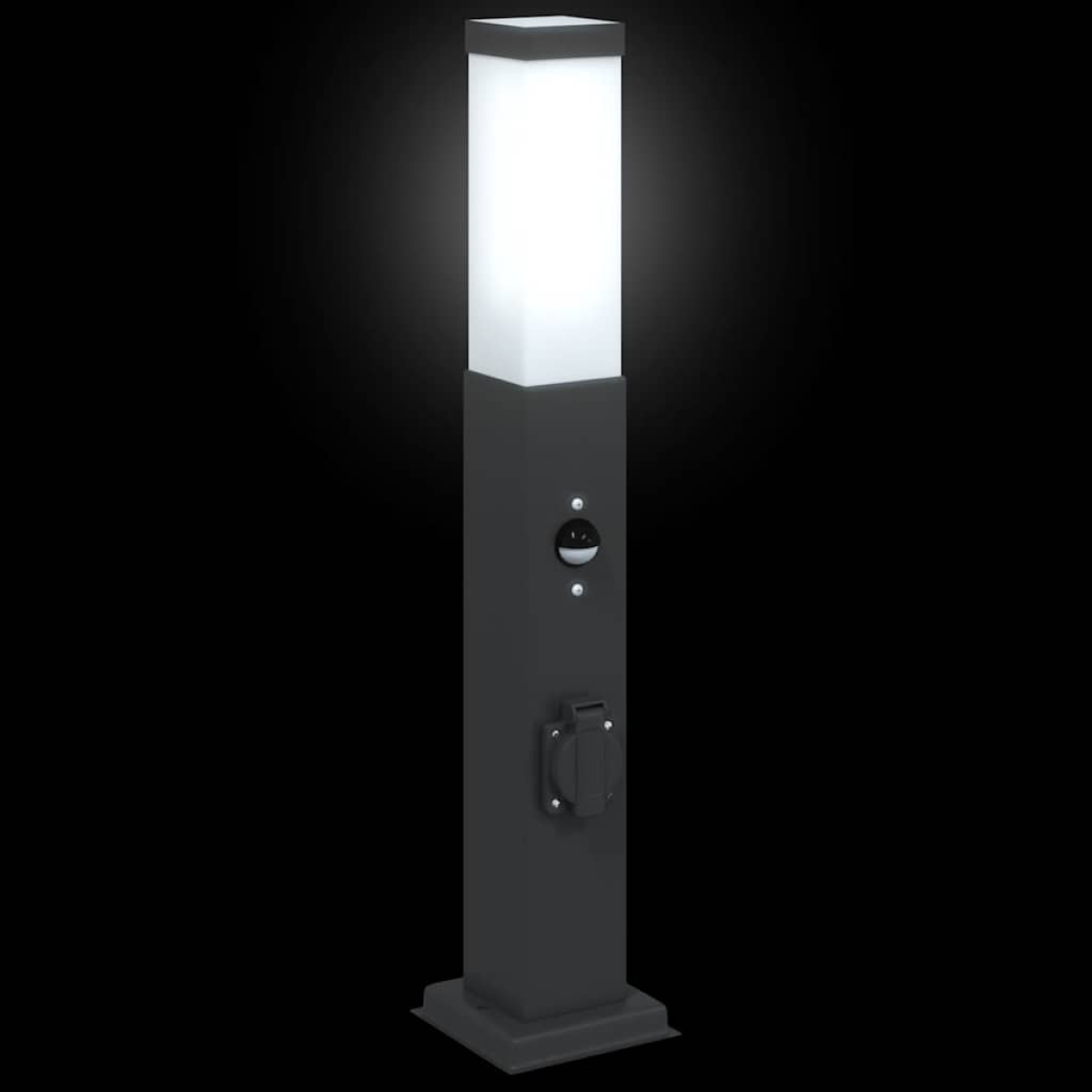 Enhance your outdoor space with these sleek and functional bollard lights! Long-lasting material with IP44 rating: Made from stainless steel with an IP44 rating, this outdoor floor light is robust, weather-resistant, and perfect for long-term outdoor use.PIR motion sensor: The outdoor standing lamp is equipped with a built-in PIR (passive infrared) motion sensor, boasting a 110° detection angle and an effective range of 8-12 meters. You can adjust both the brightness sensitivity and the lighting duration, selecting a relay time between 10 seconds and 5 minutes. The light automatically turns on when motion is detected.Built-in outlet: The garden floor light features a built-in power socket, allowing you to plug in other outdoor appliances or devices with ease. Enjoy easy access to power for your festive lights, phone chargers, or other essentials in your garden.With diffuser: The outdoor standing light comes with a plastic diffuser that helps to protect the light source from elements such as dust, water, and debris, while also providing an even and diffused light output.Versatility: The stylish patio floor light is perfect for various outdoor lighting applications. Use it to illuminate your garden, patio, pathway, driveway, or porch, while also enhancing your outdoor decor.