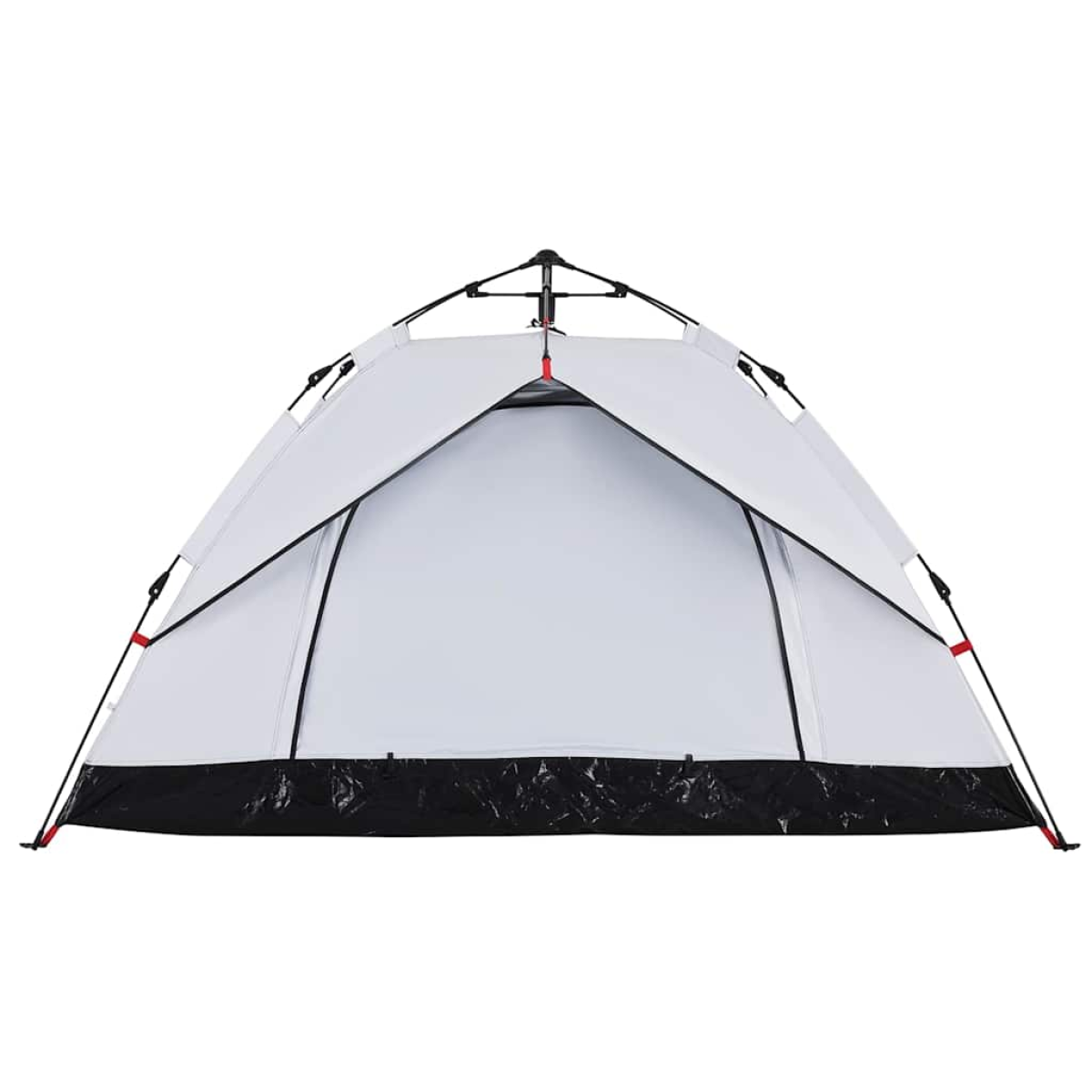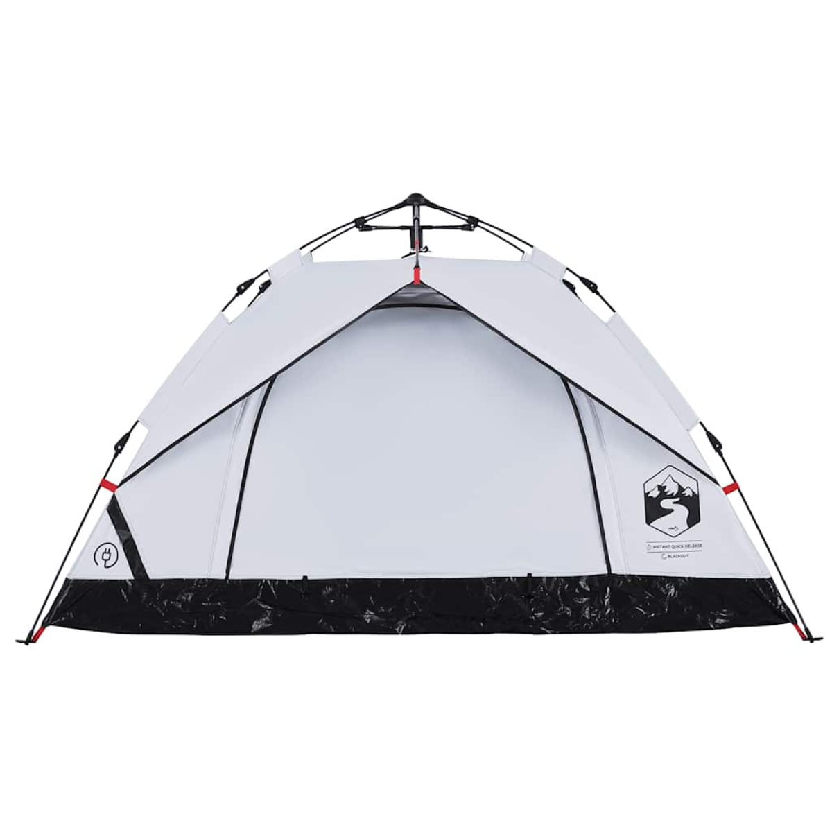 This family tent with a modern look protects you from the unpleasant weather and provides a comfortable place for anywhere adventures. All-round waterproof design: This camping tent, made from polyester with a PU coating, is waterproof and wind resistant. The taped seams effectively prevent rainwater infiltration, while the heavy-duty ground sheet helps maintain a dry and comfortable interior.White blackout fabric: The specially designed tent fabric blocks out 99% daylight, ensuring a cooler and more comfortable sleep environment. Say goodbye to early morning sunlight disturbances and enjoy a restful night's sleep.Quick-release system: Set up the tent effortlessly with the quick-release system! Lay the tent down, extend the pre-assembled poles until they lock into place, and you're all set!Good ventilation & mosquito protection: The mesh walls not only offer excellent ventilation but also effectively keep insects at bay, ensuring a comfortable and bug-free experience for users.Convenient electrical cord access: The E-port allows you to easily connect an extension cord from an external power source to your tent.Lightweight and portable: The foldable and lightweight design allows you to easily pack the tent and store it in the included carry bag for easy transport. Warning:Keep all flame and heat sources away from this product fabric.