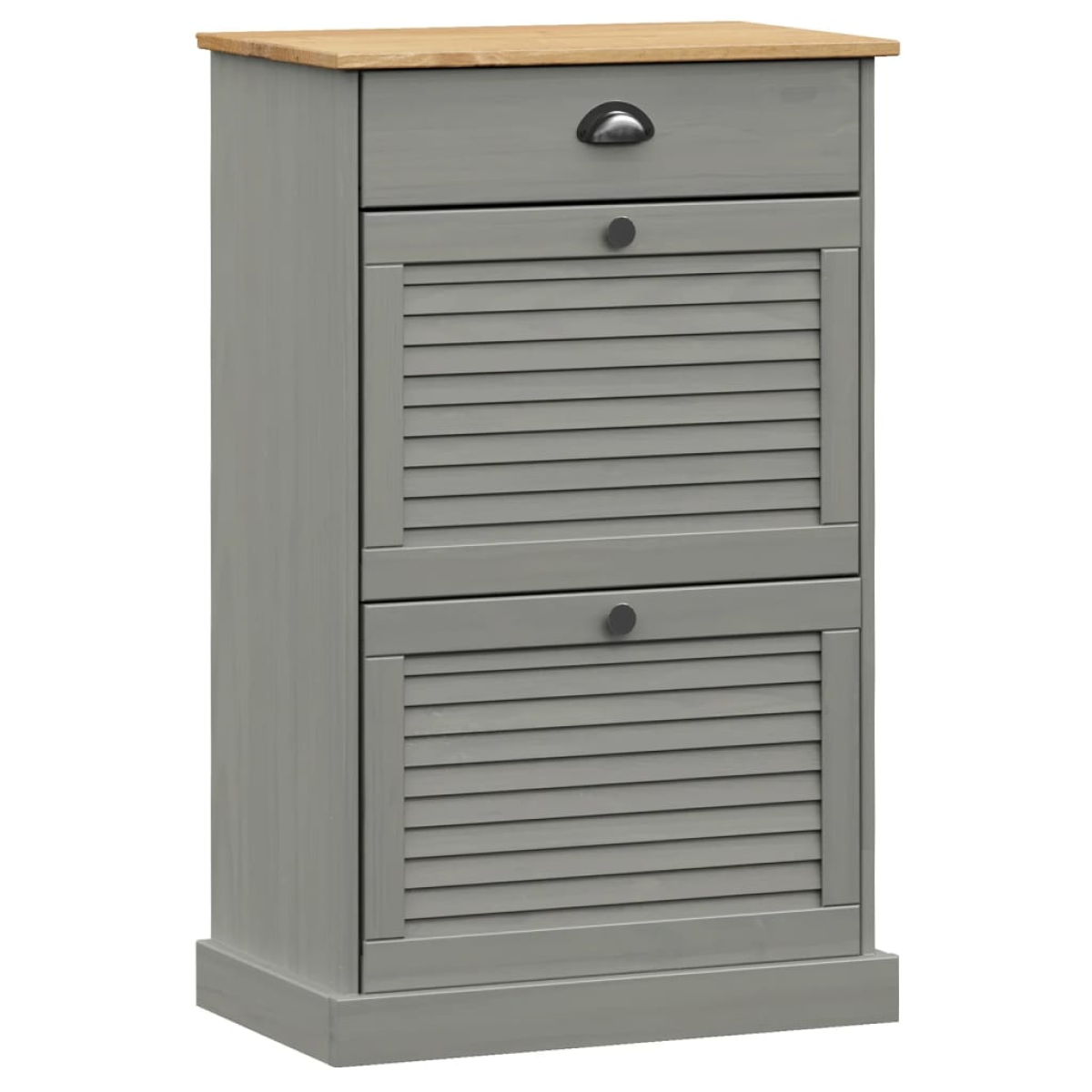 Keep your shoes away from dust and clutter to create a tidy environment for your home with this elegant shoe cabinet! Solid pine wood: Solid pine wood is a beautiful natural material. Pine wood has a straight grain, and the knots give the material its signature, rustic look. Made of solid pine wood, the shoe storage is durable and sturdy.Ample storage space: This shoe shelf provides ample storage space to store and keep your shoes and small things well organised.Easy to maintain: The shoe storage cabinet is easy to clean with a damp cloth and requires less maintenance.Metal handle and knobs: The shoe cupboard comes with metal handle and knobs that make it easy to open and close while adding to extra beauty. Warning:To prevent it being overturned, this product must be used with the provided wall attachment device.