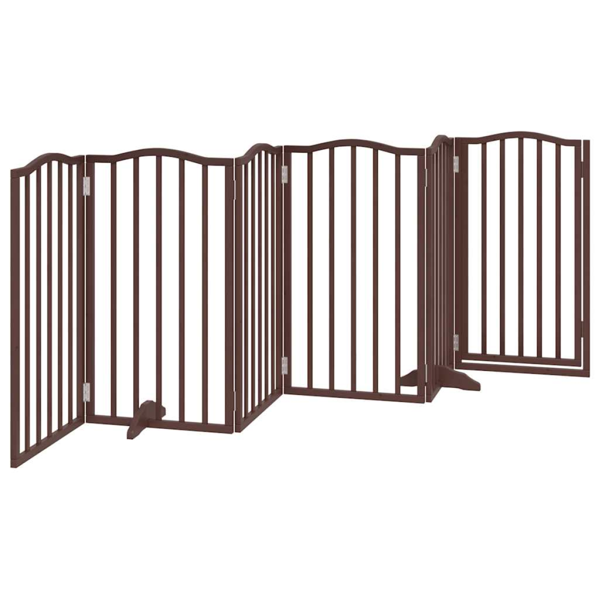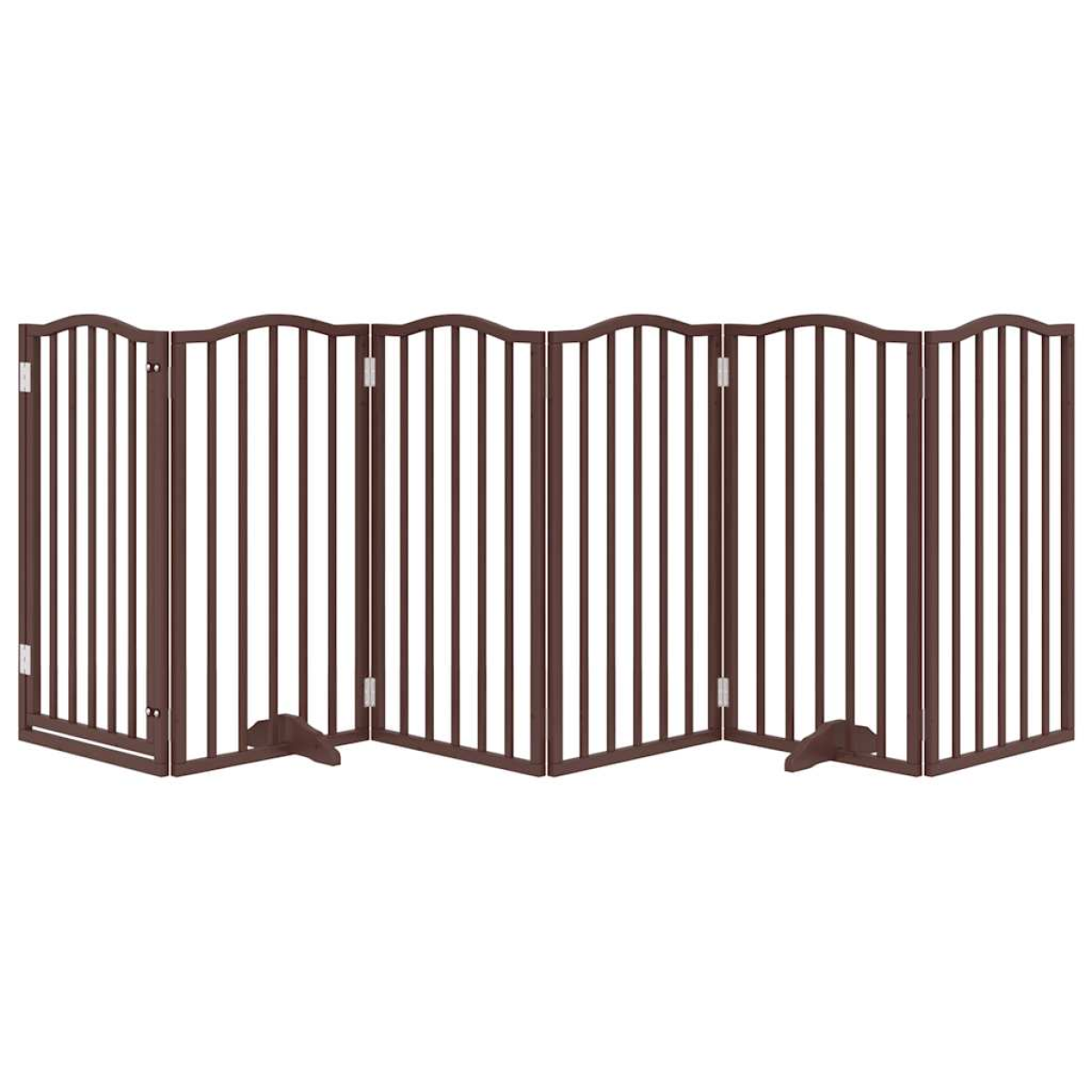The dog gate puts your pet in a fixed activity area, which can keep your pet safe and prevent you from being disturbed.Durable material: The dog gate is made of poplar wood with water-base paint, making it durable, long-lasting, and easy to clean.Easy to use: The dog gate does not require installation or drilling that doesn't damage your home. This dog gate can be totally foldable when without feet, making it easy to carry and store in the closet or somewhere else.Practical design: The dog gate features two sturdy feet, providing stability and allowing for easy adjustments. Additionally, it includes a door panel and is equipped with locks, providing enhanced security and convenience for both you and your pets.Multiple applications: This dog gate can effectively prevent your pets from jumping over and getting through. Therefore, it is perfect for keeping your pets safe in the living room, kitchen, stairs, and doorway.