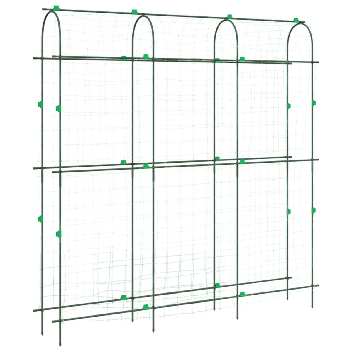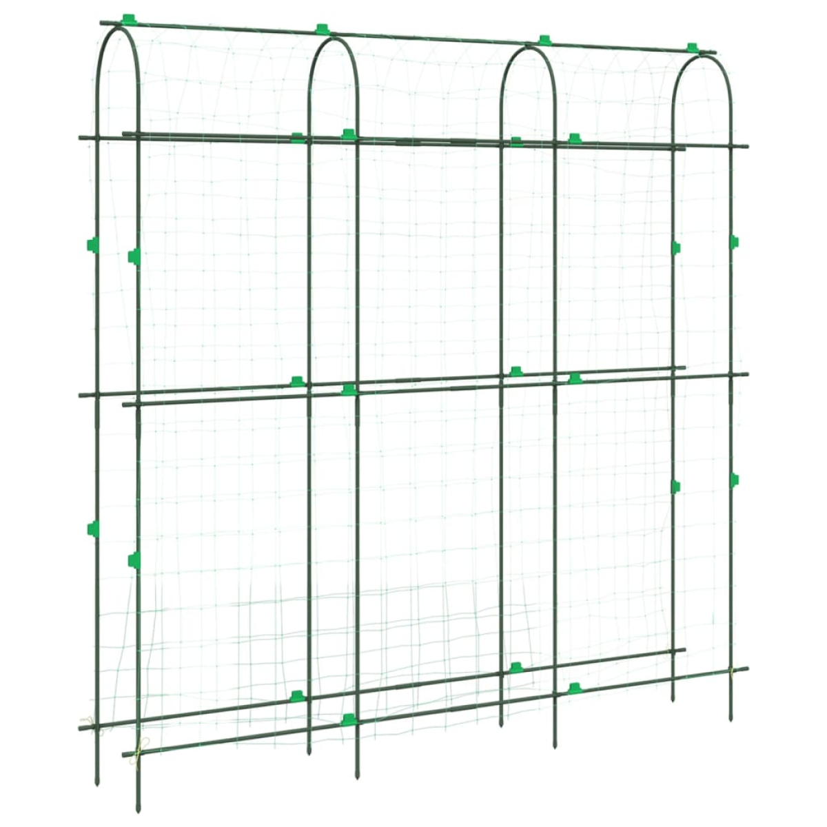 The garden trellis is designed to be U-shaped, allowing you to plant various climbing plants on both sides. Durable and stable: The garden trellis is made of steel with a PE coating, making it durable, corrosion-resistant, and long-lasting. Additionally, it features a U-shaped design, ensuring maximum stability for your climbing plants.Practical design: The garden trellis with a net that prevents plants and fruits from failing and facilitates harvesting. Additionally, it includes clips to secure and guide your plants.Easy to use: The garden trellis is simple to assemble when in use and easily disassembled when not in use in the off-season. Additionally, the width of the U-shaped support tube can be adjusted by yourself to some extent.Wide applications: This garden trellis with thickened metal tubes is suitable for a variety of climbing plants, including grapes, peas, cucumbers, eggplants, roses, and more. It could help create a beautiful and productive garden.
