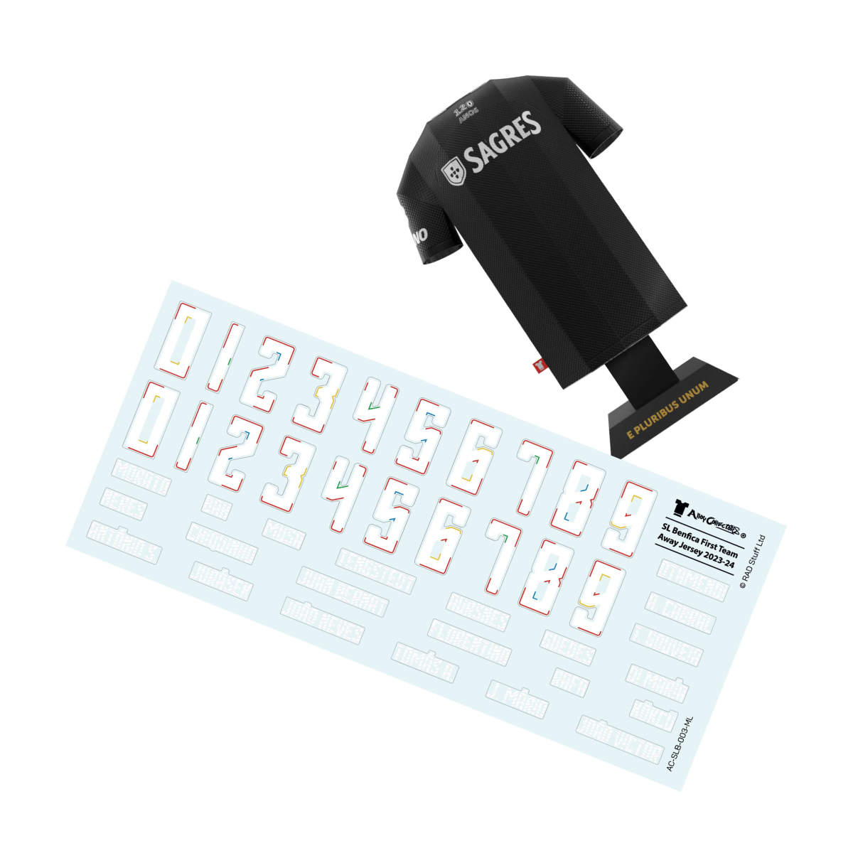 • Simple-to-use water decal sheet featuring player names and numbers, to customise your Benfica away kit post assembly