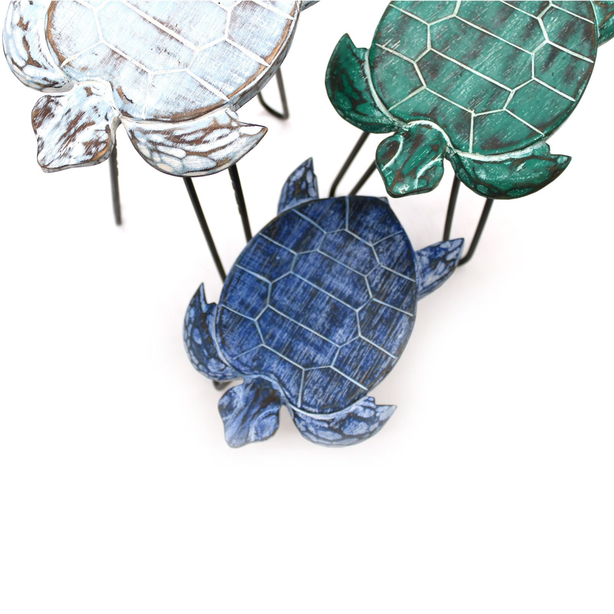 Set of 3 Albasia Wood Plant Stands - Turtles
