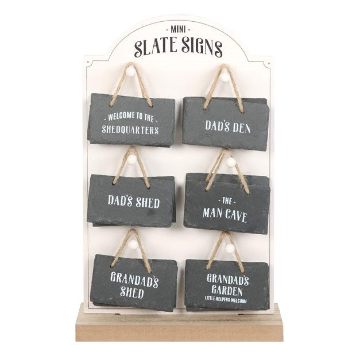 These charming Mini Slate Signs will add a rustic and personal touch to any father or grandfather's special space. Whether it's marking his shed, man cave, or garden, these signs are designed with a homely, handcrafted feel that will add special character to his favourite retreat. Sold as a set of 24 signs, equally assorted, on a matching MDF display stand.