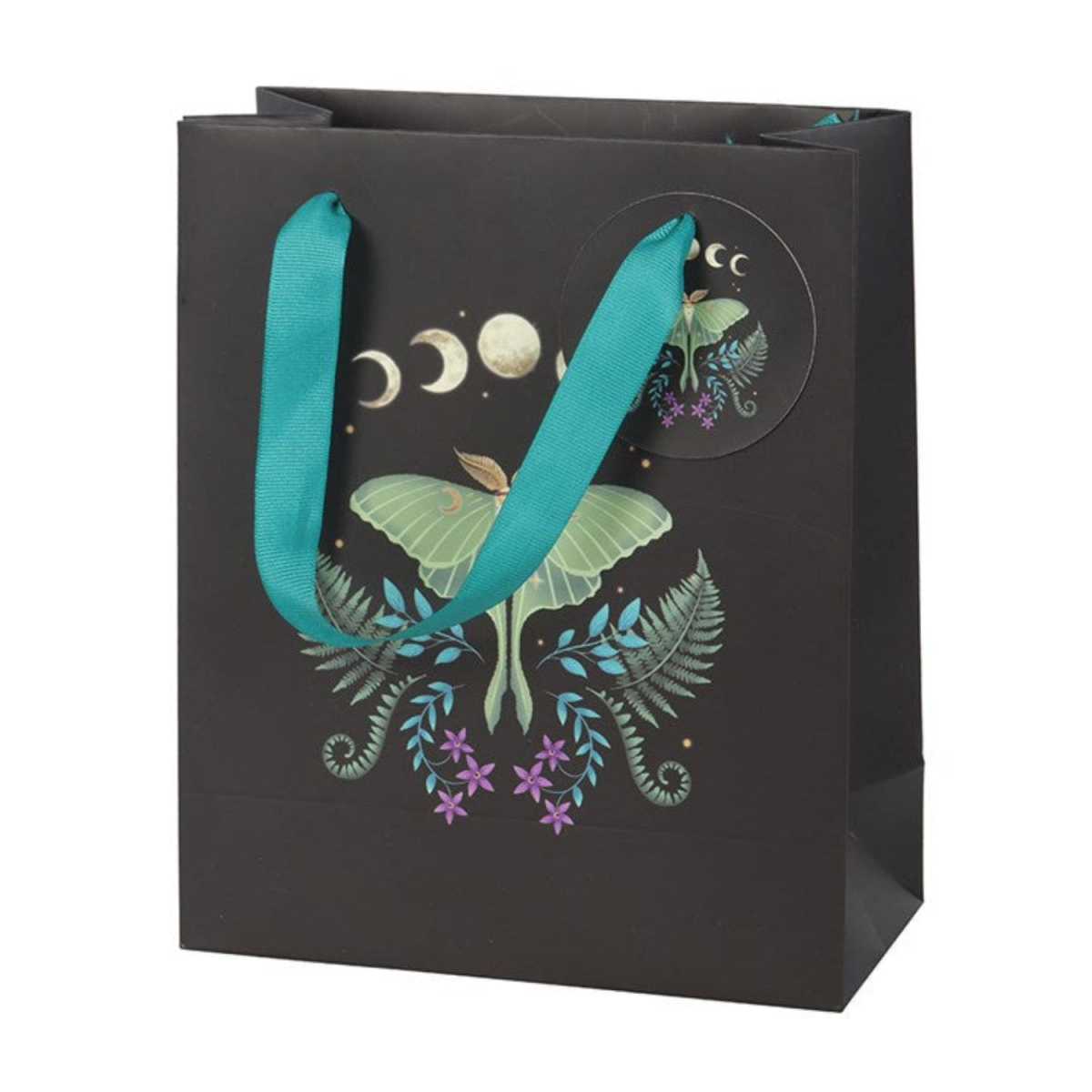 Adorned with a mystical luna moth and moon phase design, this printed gift bag will add a touch of magic to any gift. 23cm tall.