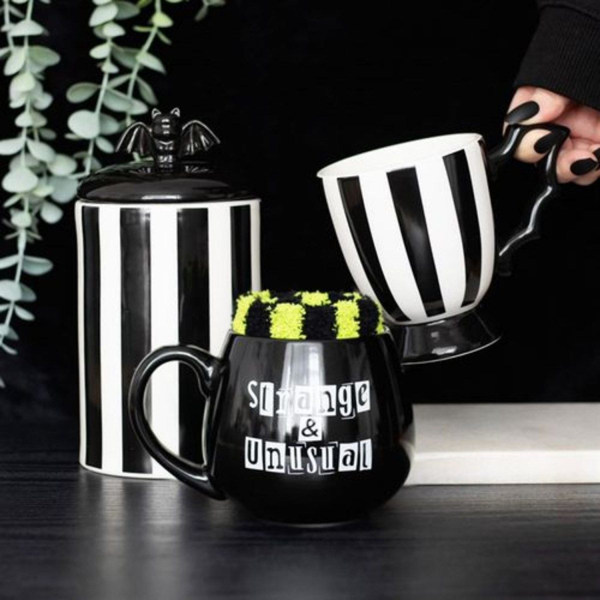 Forget about wearing your heart on your sleeve, express yourself and say it like it is with this bold 'Strange and Unusual' mug and stripey socks set. The perfect mug for quirky souls who embrace their uniqueness. Dishwasher safe. Microwave safe. 500ml.